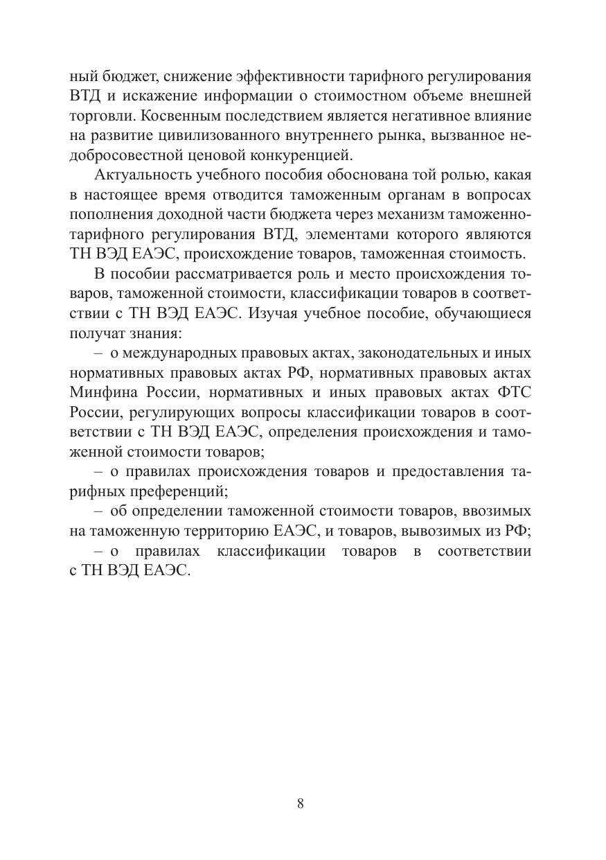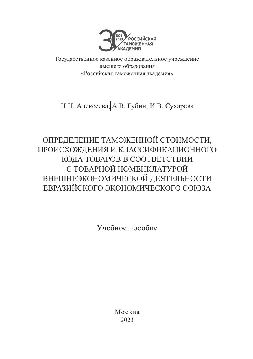 Учебное пособие посвящено вопросам определения и контроля происхождения товаров, таможенной стоимости товаров, а также определения классификационного