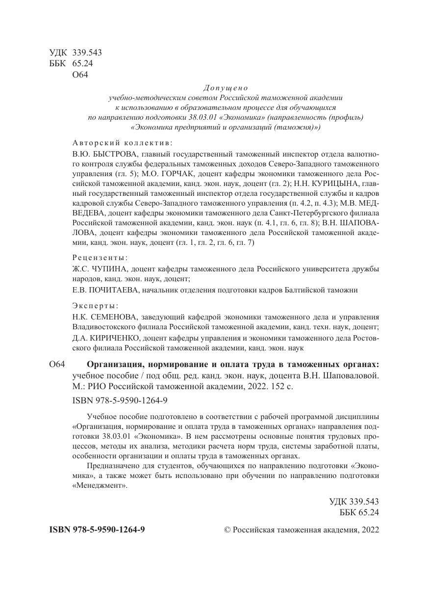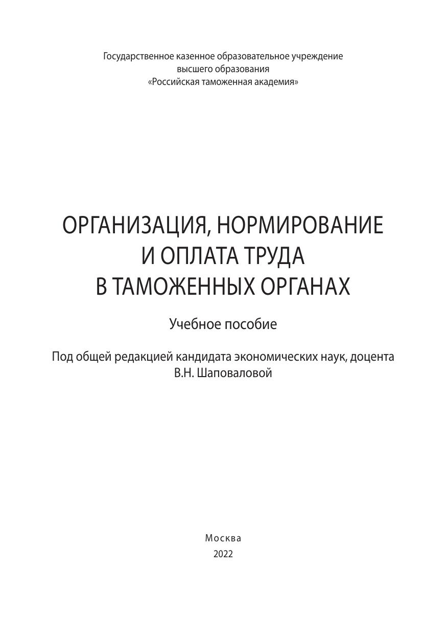Учебное пособие подготовлено в соответствии с рабочей программой дисциплины «Организация, нормирование и оплата труда в таможенных органах» направления под-