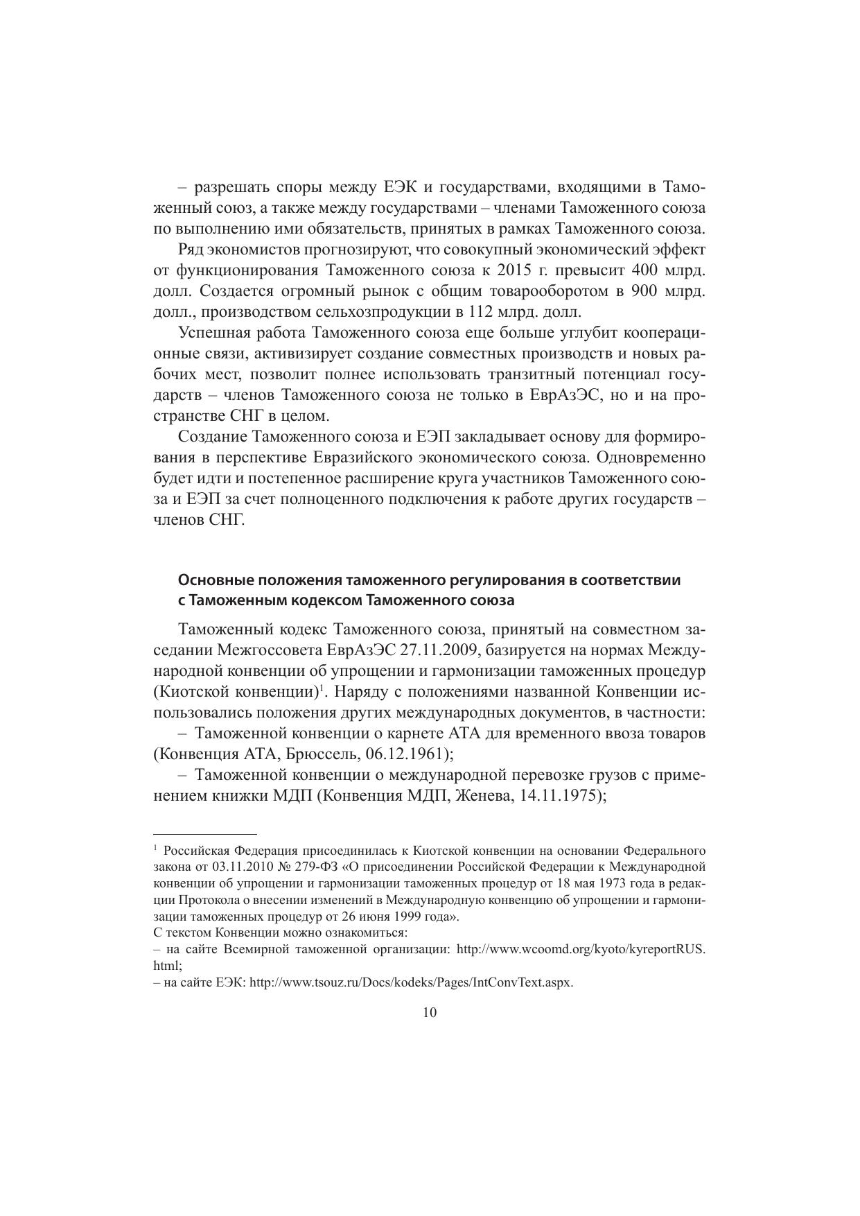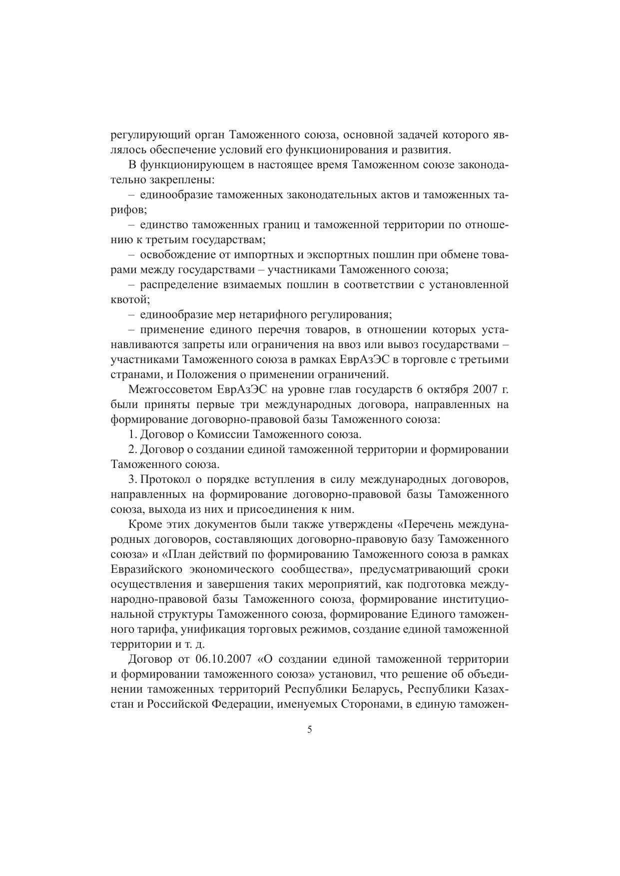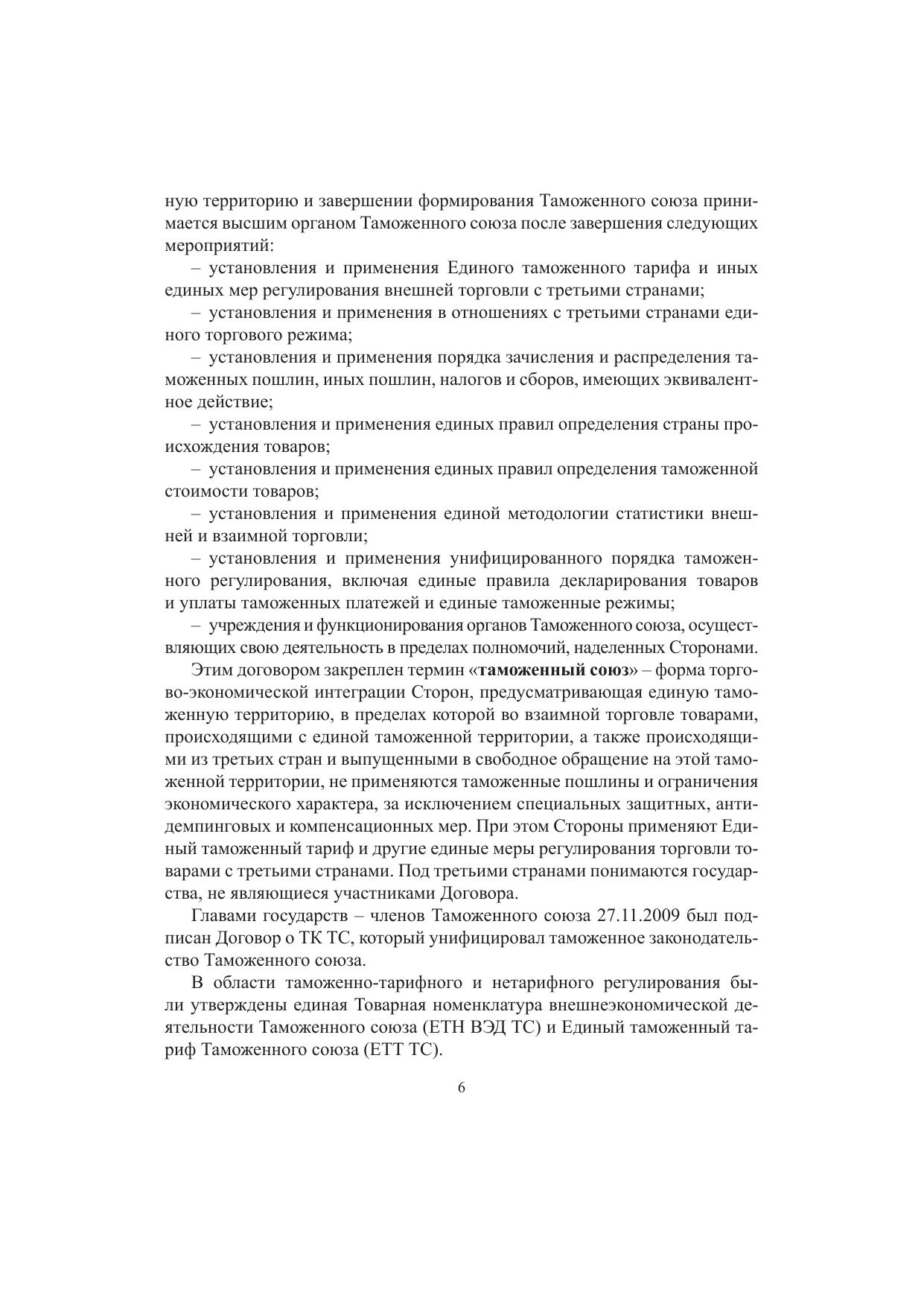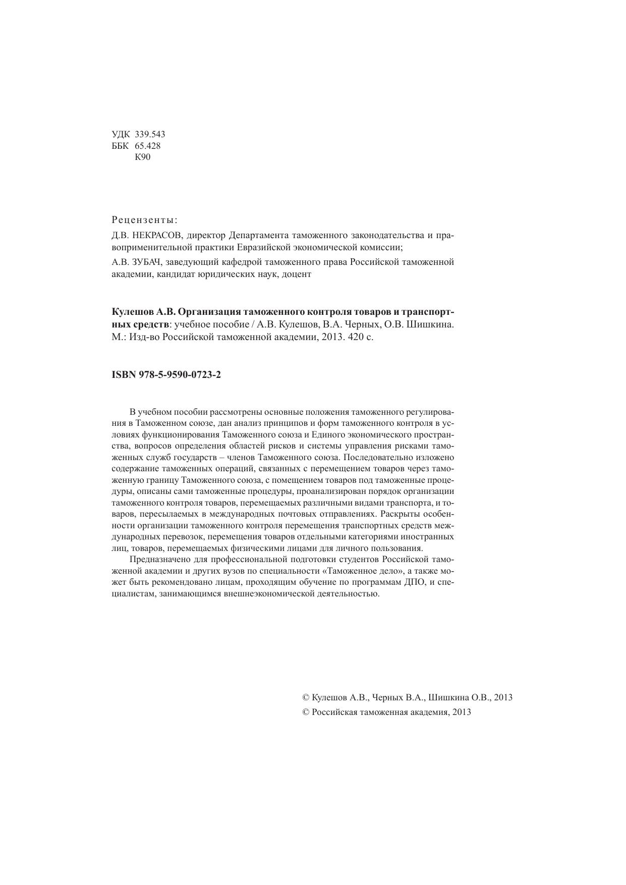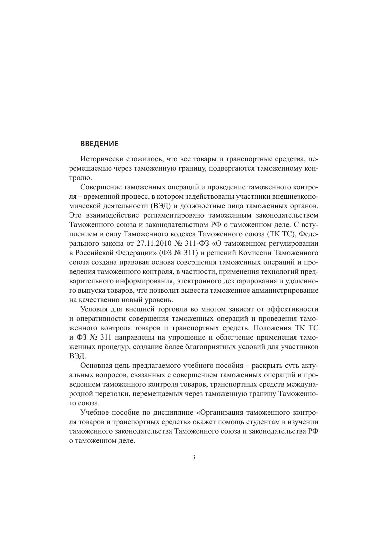 В учебном пособии рассмотрены основные положения таможенного регулирования в Таможенном союзе, дан анализ принципов и форм таможенного контроля в условиях функционирования Таможенного союза и Единого экономического пространства, вопросов определения областей рисков и системы управления рисками таможенных служб государств – членов Таможенного союза. Последовательно изложено содержание таможенных операций, связанных с перемещением товаров через таможенную границу Таможенного союза, с помещением товаров под таможенные процедуры, описаны сами таможенные процедуры, проанализирован порядок организации таможенного контроля товаров, перемещаемых различными видами транспорта, и товаров, пересылаемых в международных почтовых отправлениях. Раскрыты особенности организации таможенного контроля перемещения транспортных средств международных перевозок, перемещения товаров отдельными категориями иностранных лиц, товаров, перемещаемых физическими лицами для личного пользования. Предназначено для профессиональной подготовки студентов Российской таможенной академии и других вузов по специальности «Таможенное дело», а также может быть рекомендовано лицам, проходящим обучение по программам ДПО, и специалистам, занимающимся внешнеэкономической деятельностью.