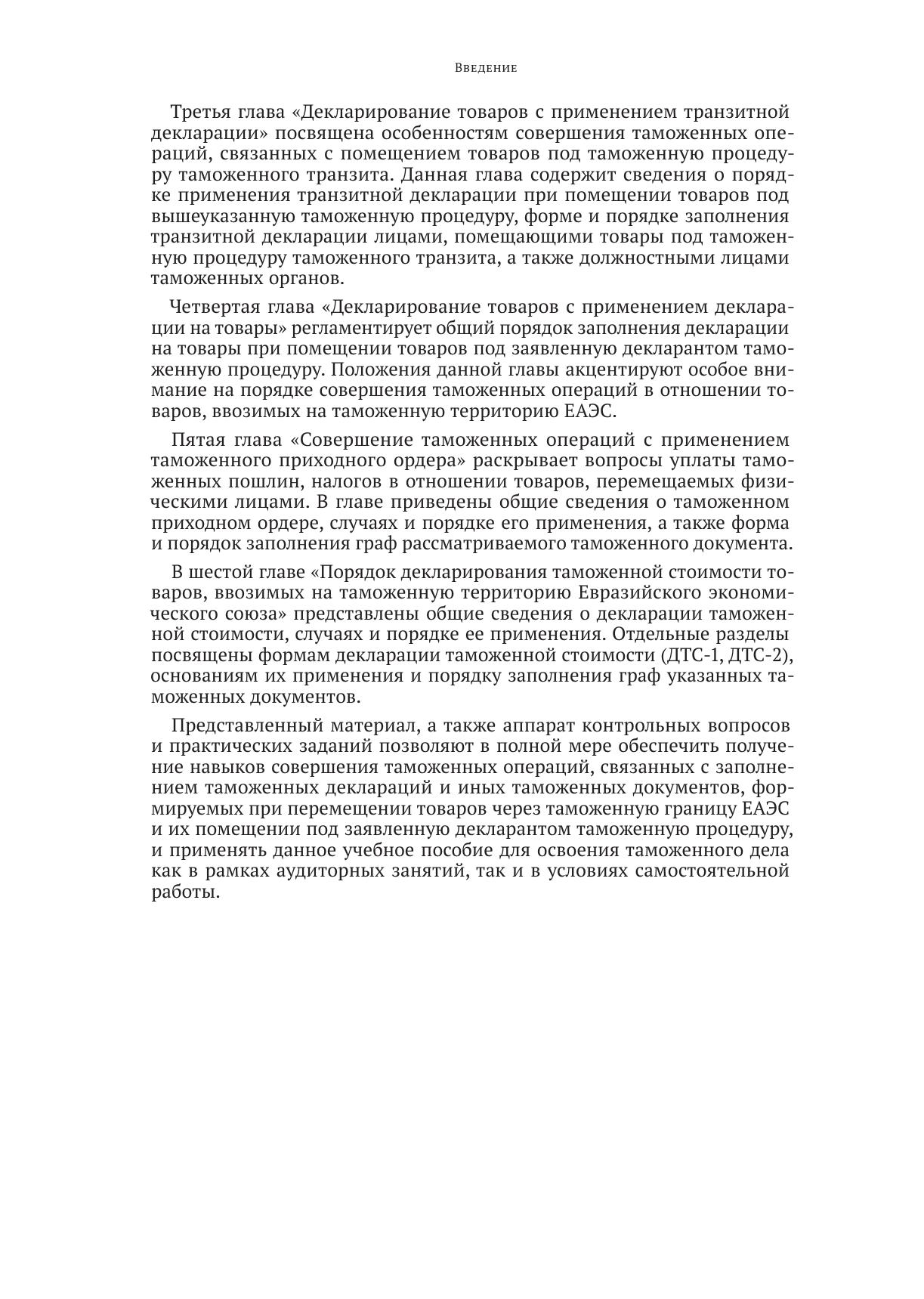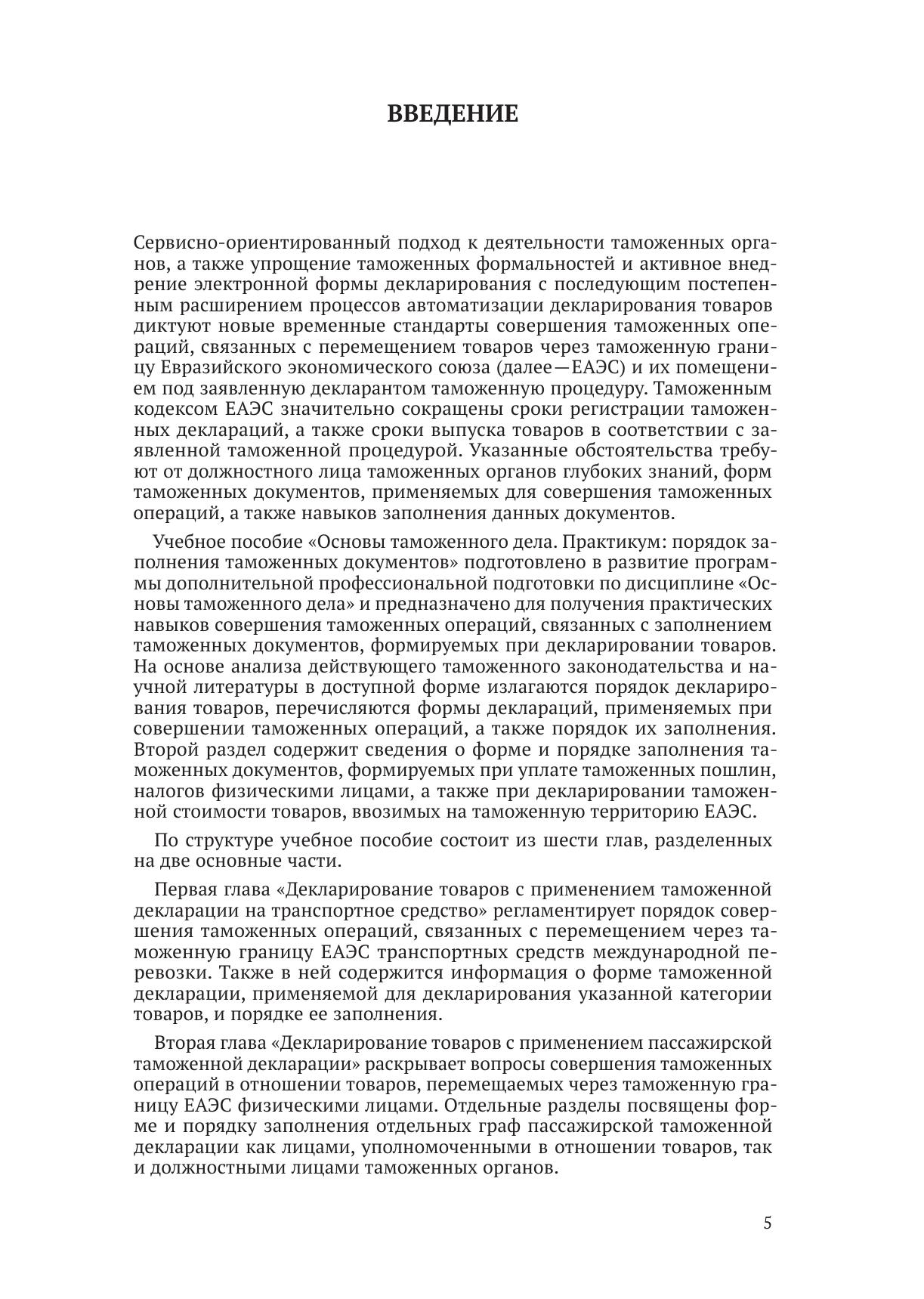 Учебное пособие разработано в соответствии с федеральным государственным образовательным стандартом высшего образования. В нем рассматриваются основные вопросы, необходимые для организации должностными лицами таможенных органов совершения таможенных операций, связанных с декларированием товаров, перемещаемых через таможенную границу Евразийского экономического союза, а также помещаемых под заявленную декларантом таможенную процедуру.