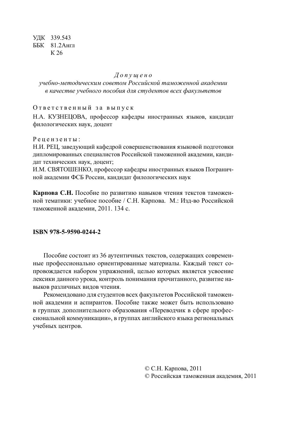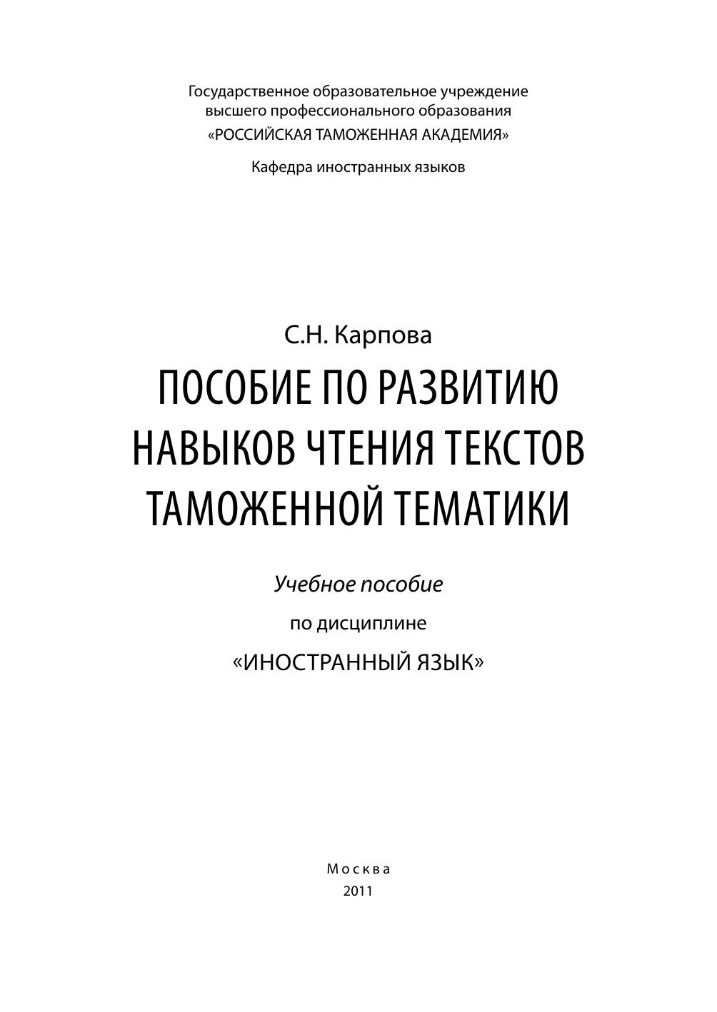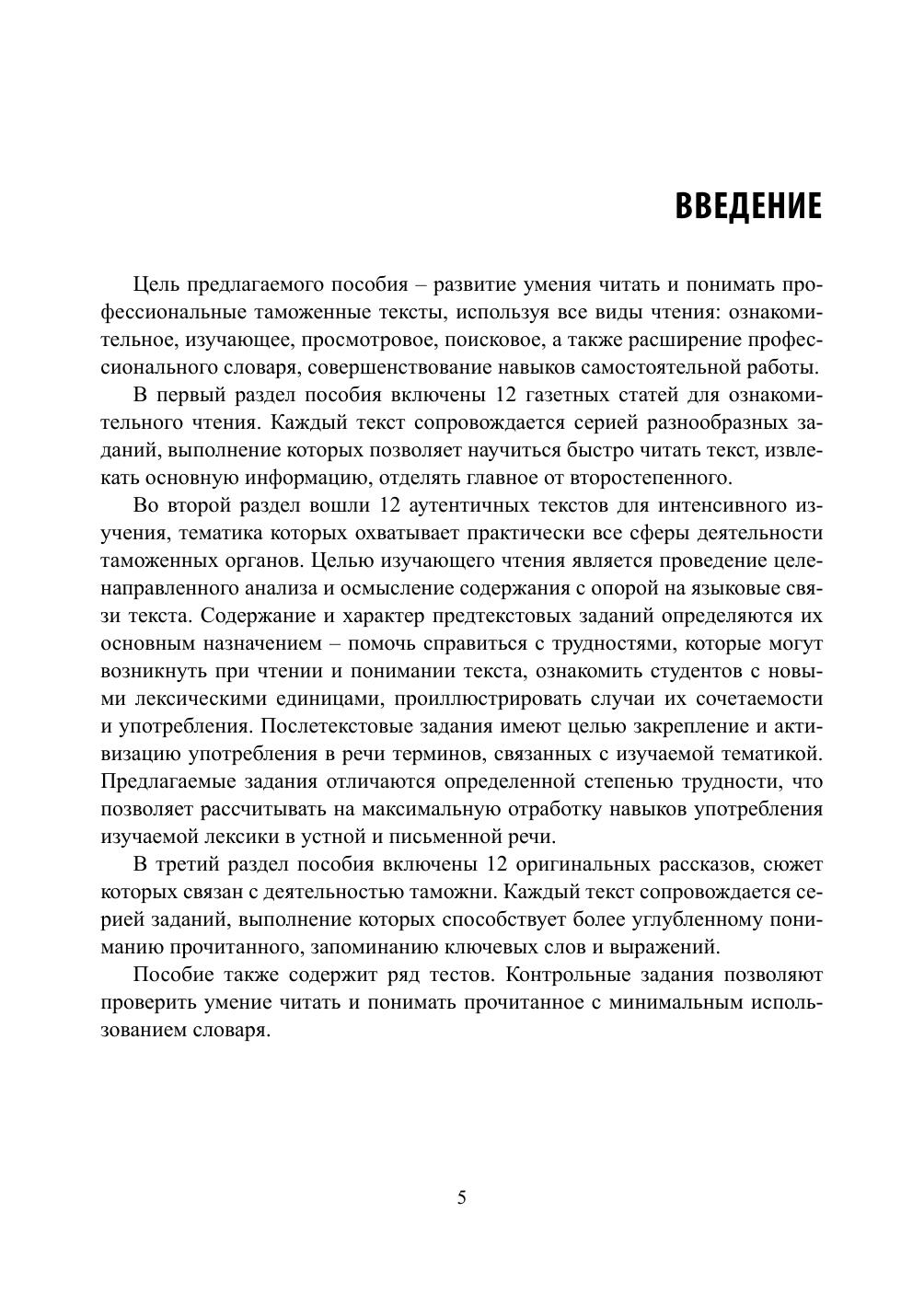 Пособие по развитию навыков чтения текстов таможенной тематики: учебное пособие