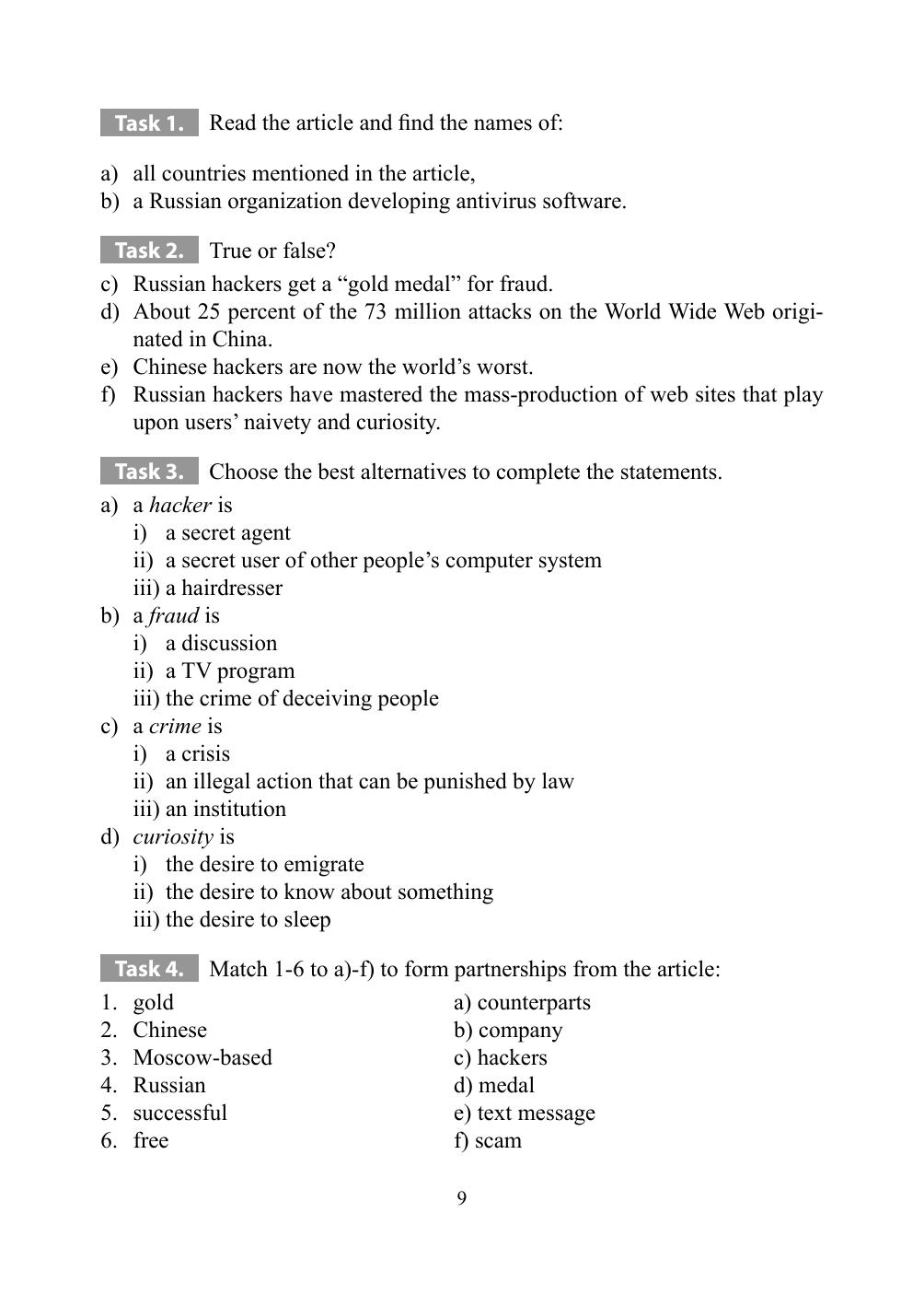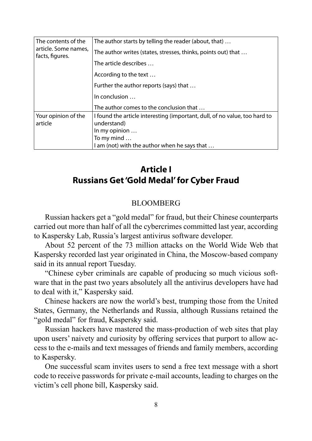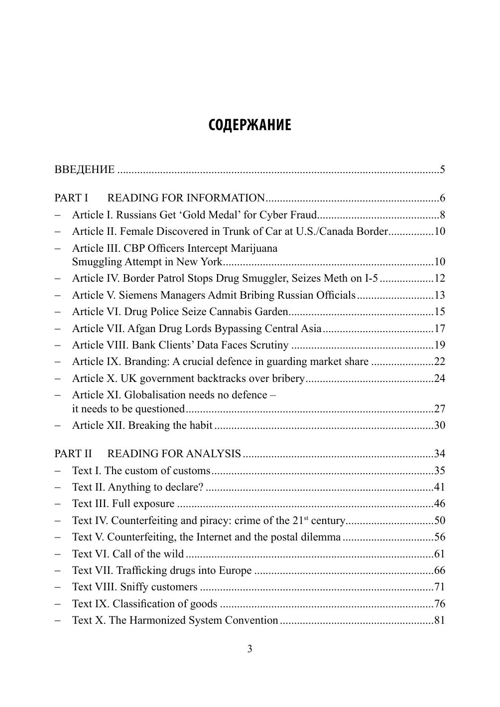 Пособие состоит из 36 аутентичных текстов, содержащих современные профессионально ориентированные материалы. Каждый текст сопровождается набором упражнений, целью которых является усвоение лексики данного урока, контроль понимания прочитанного, развитие навыков различных видов чтения. Рекомендовано для студентов всех факультетов Российской таможенной академии и аспирантов. Пособие также может быть использовано в группах дополнительного образования «Переводчик в сфере профессиональной коммуникации», в группах английского языка региональных учебных центров.