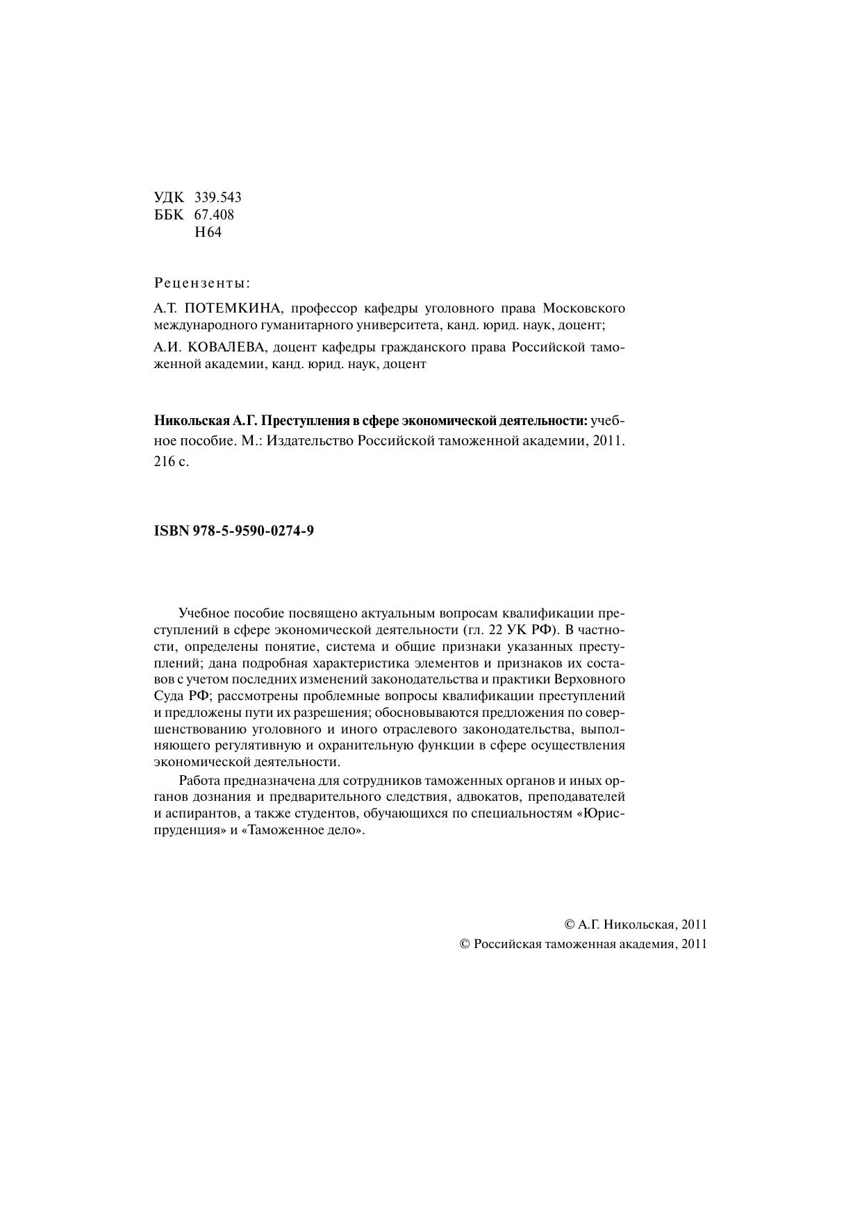 Учебное пособие посвящено актуальным вопросам квалификации преступлений в сфере экономической деятельности (гл. 22 УК РФ). В частности, определены понятие, система и общие признаки указанных преступлений; дана подробная характеристика элементов и признаков их составов с учетом последних изменений законодательства и практики Верховного Суда РФ; рассмотрены проблемные вопросы квалификации преступлений и предложены пути их разрешения; обосновываются предложения по совершенствованию уголовного и иного отраслевого законодательства, выполняющего регулятивную и охранительную функции в сфере осуществления экономической деятельности. Работа предназначена для сотрудников таможенных органов и иных органов дознания и предварительного следствия, адвокатов, преподавателей и аспирантов, а также студентов, обучающихся по специальностям «Юриспруденция» и «Таможенное дело».