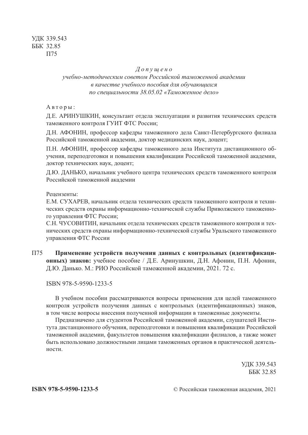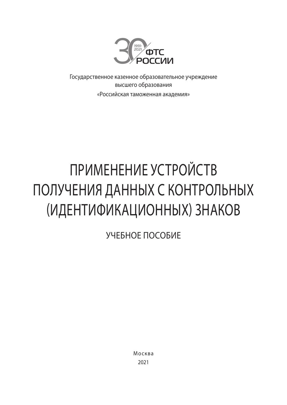 В учебном пособии рассматриваются вопросы применения для целей таможенного контроля устройств получения данных с контрольных (идентификационных) знаков, в том числе вопросы внесения полученной информации в таможенные документы.