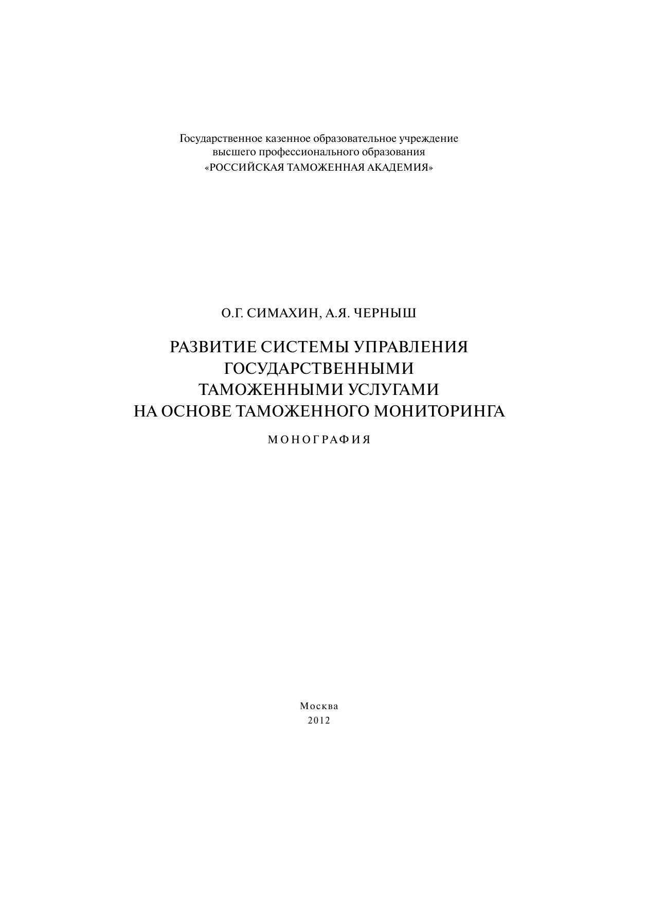 Развитие системы управления государственными таможенными услугами на основе таможенного мониторинга: монография