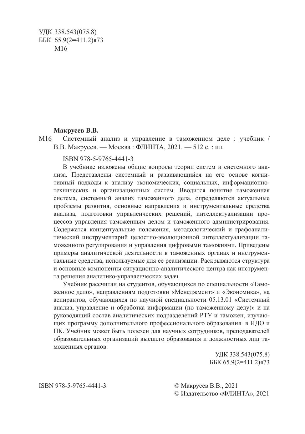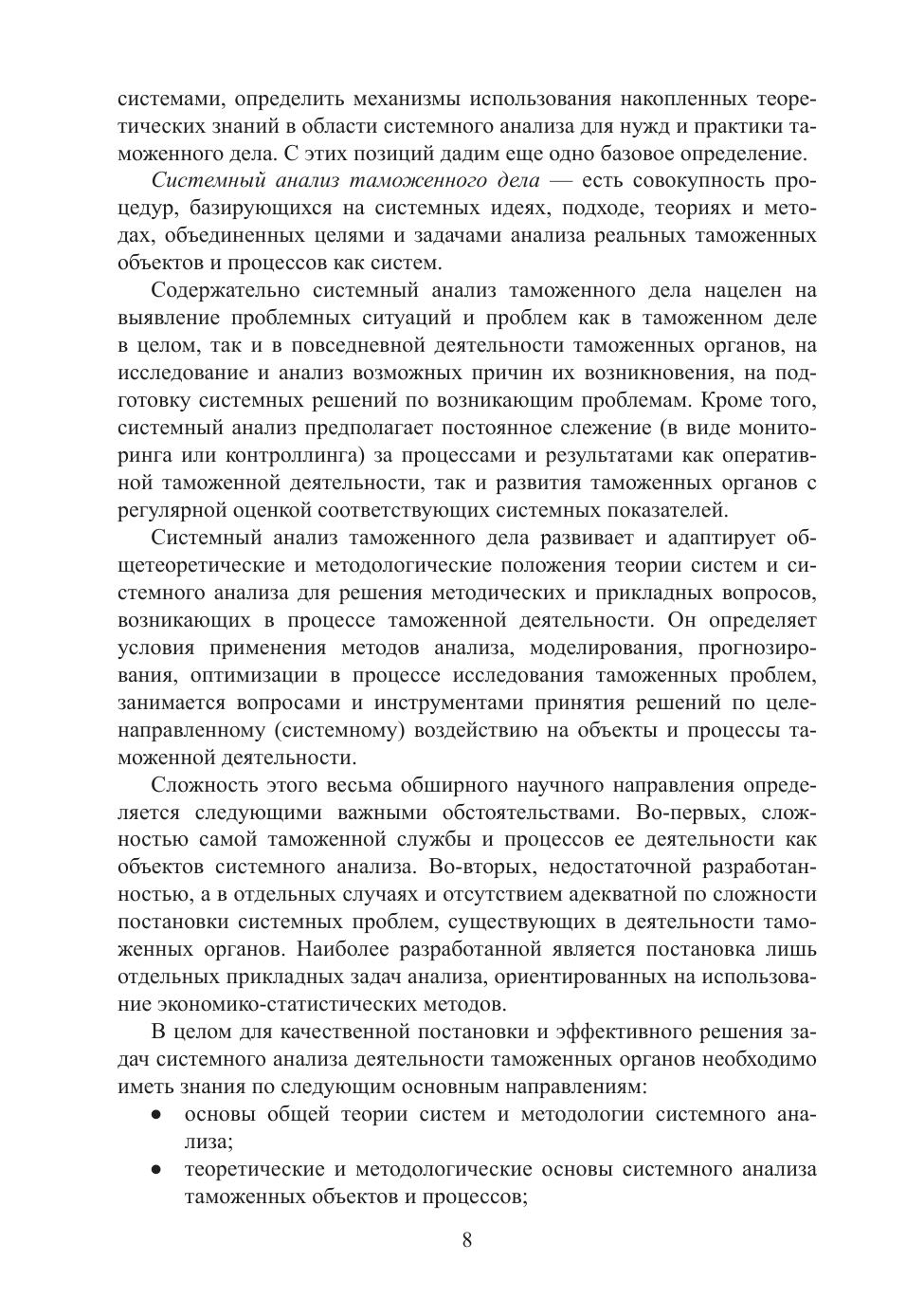 В учебнике изложены общие вопросы теории систем и системного анализа. Представлены системный и развивающийся на его основе когнитивный подходы к анализу экономических, социальных, информационно-технических и организационных систем. Вводится понятие таможенная система, системный анализ таможенного дела, определяются актуальные проблемы развития, основные направления и инструментальные средства анализа, подготовки управленческих решений, интеллектуализации процессов управления таможенным делом и таможенного администрирования. Содержатся концептуальные положения, методологический и графоаналитический инструментарий целостно-эволюционной интеллектуализации таможенного регулирования и управления цифровыми таможнями. Приведены примеры аналитической деятельности в таможенных органах и инструментальные средства, используемые для ее реализации. Раскрываются структура и основные компоненты ситуационно-аналитического центра как инструмента решения аналитико-управленческих задач. Учебник рассчитан на студентов, обучающихся по специальности «Таможенное дело», направлениям подготовки «Менеджмент» и «Экономика», на аспирантов, обучающихся по научной специальности 05.13.01 «Системный анализ, управление и обработка информации (по таможенному делу)» и на руководящий состав аналитических подразделений РТУ и таможен, изучающих программу дополнительного профессионального образования в ИДО и ПК. Учебник может быть полезен для научных сотрудников, преподавателей образовательных организаций высшего образования и должностных лиц таможенных органов.