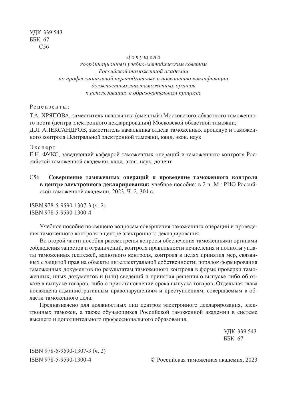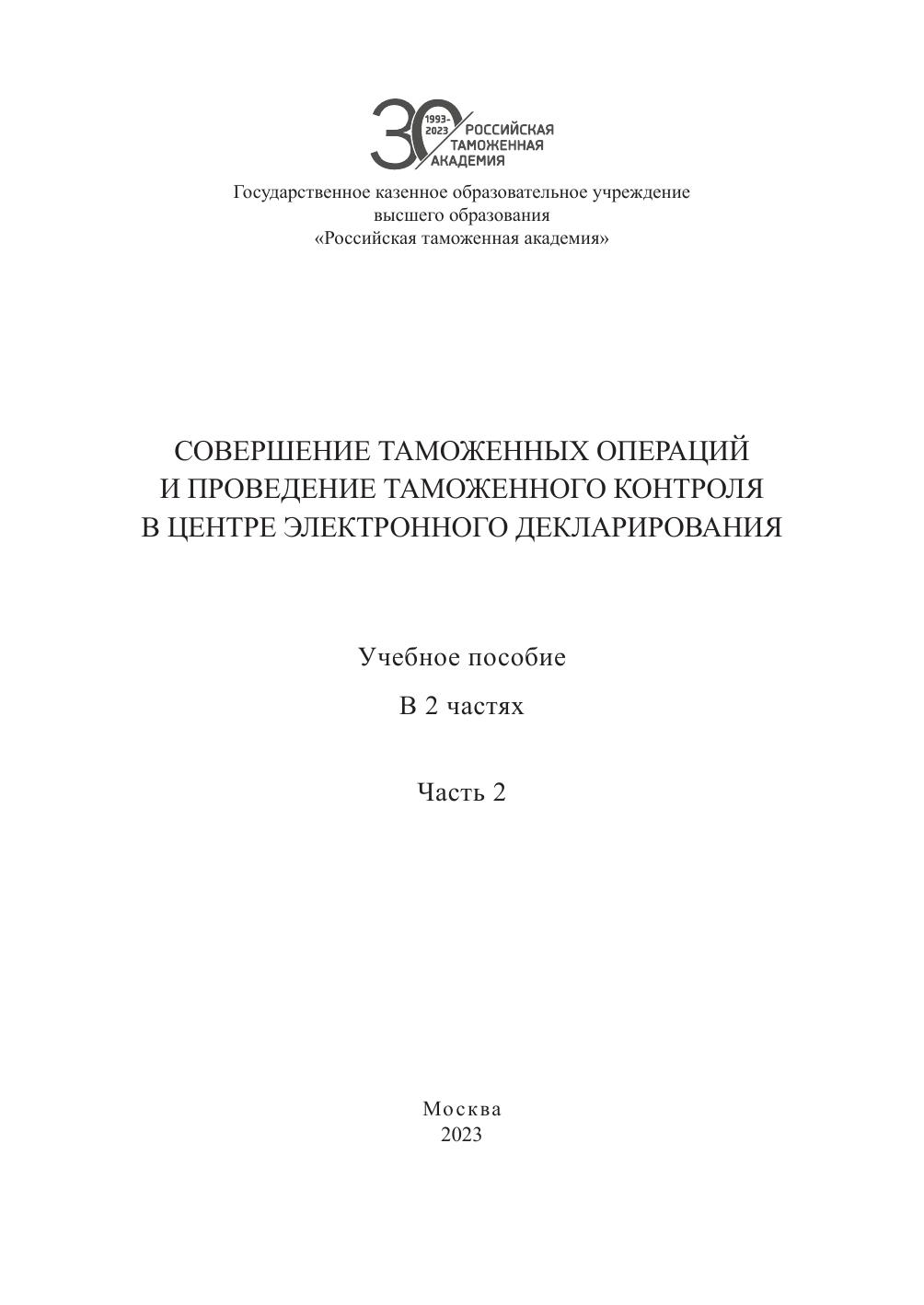 Совершение таможенных операций и проведение таможенного контроля в центре электронного декларирования В 2 частях Часть 2