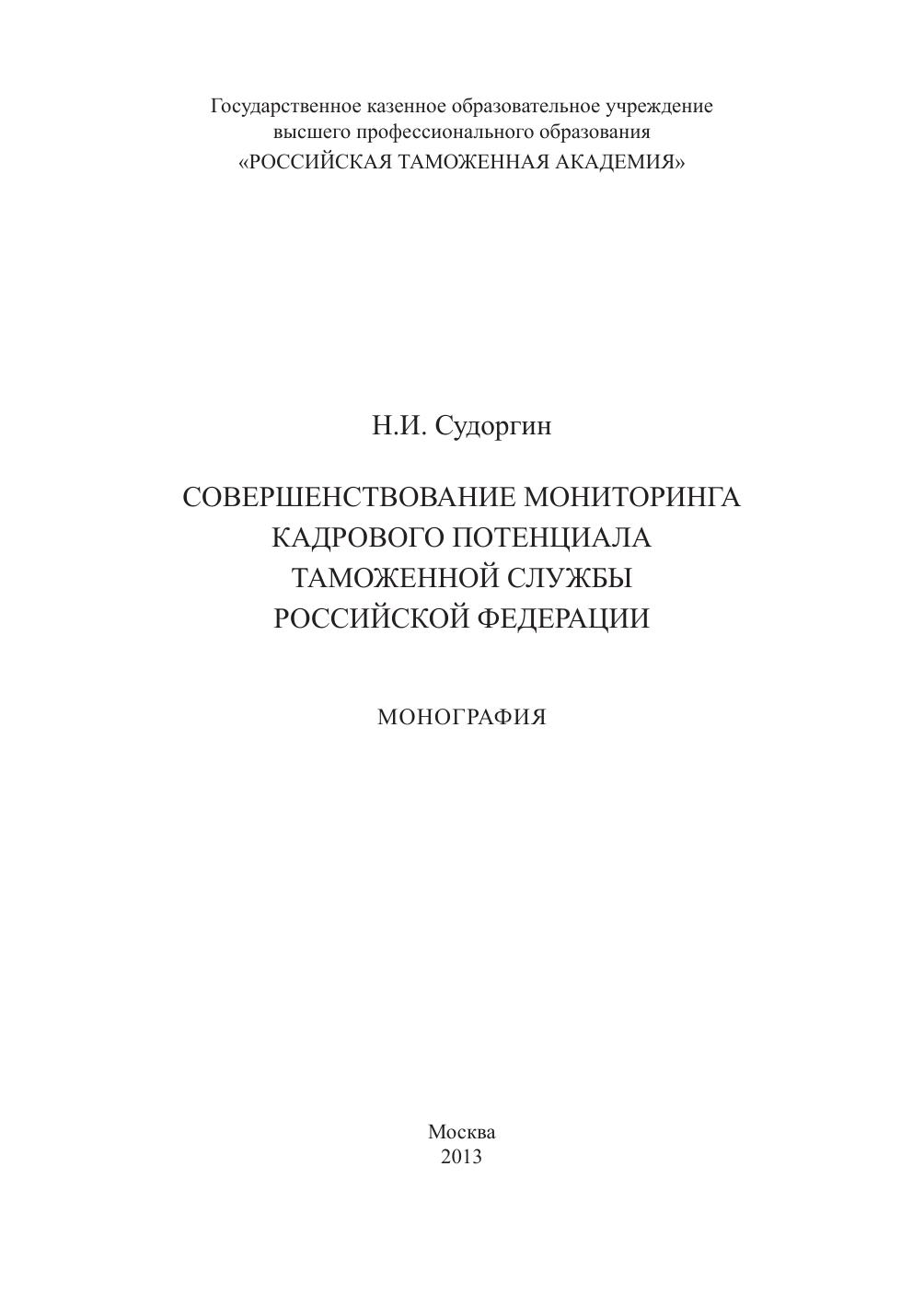 Совершенствование мониторинга кадрового потенциала таможенной службы Российской Федерации: монография