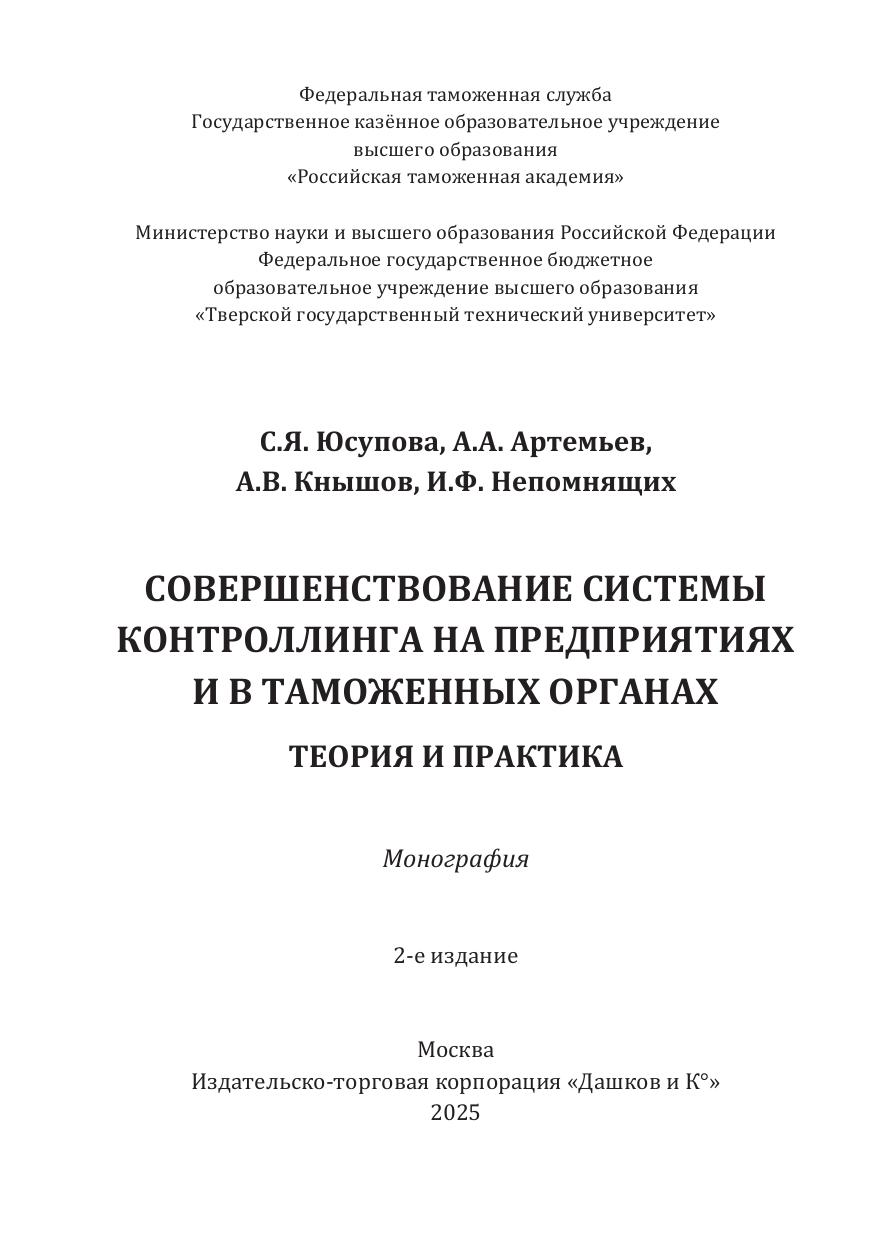 Совершенствование системы контроллинга на предприятиях и в таможенных органах. Теория и практика