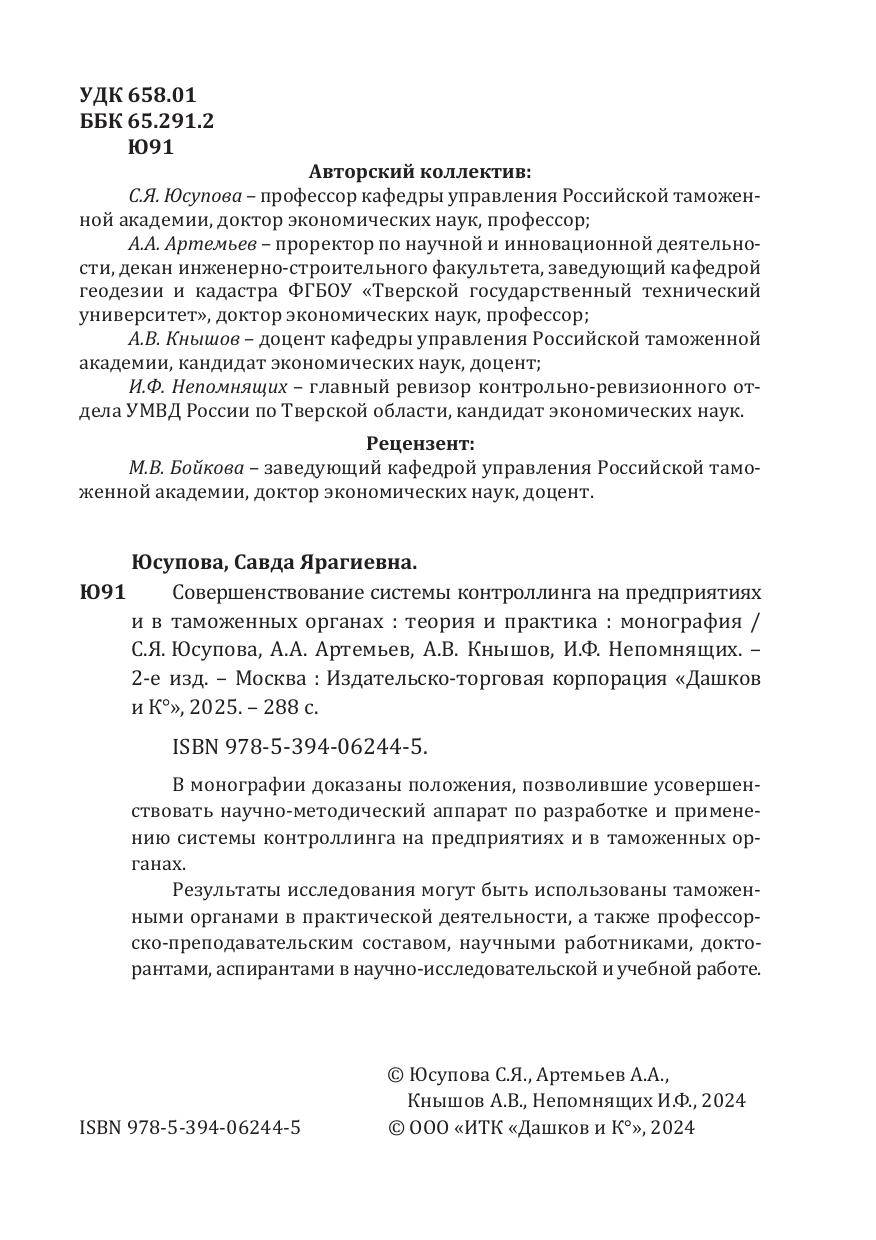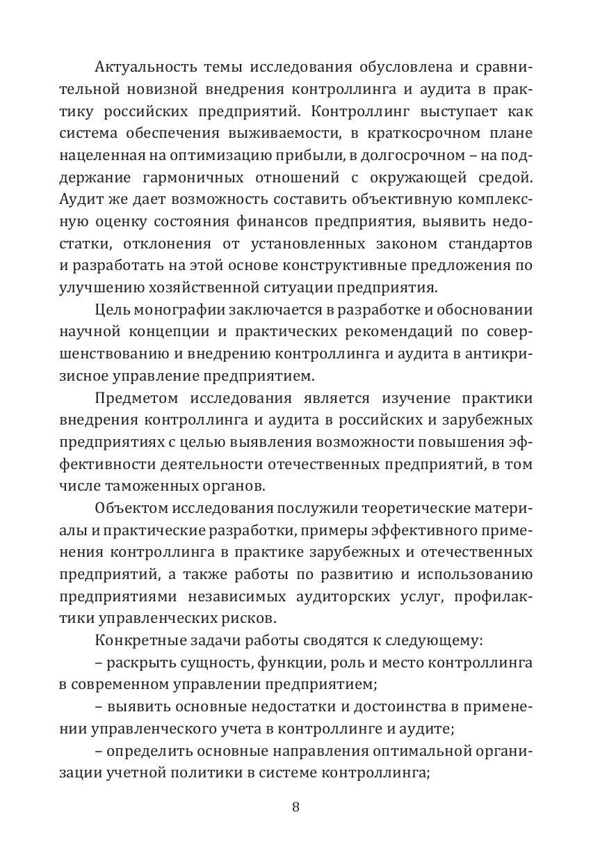 В монографии доказаны положения, позволившие усовершенствовать научно-методический аппарат по разработке и применению системы контроллинга на предприятиях и в таможенных органах.