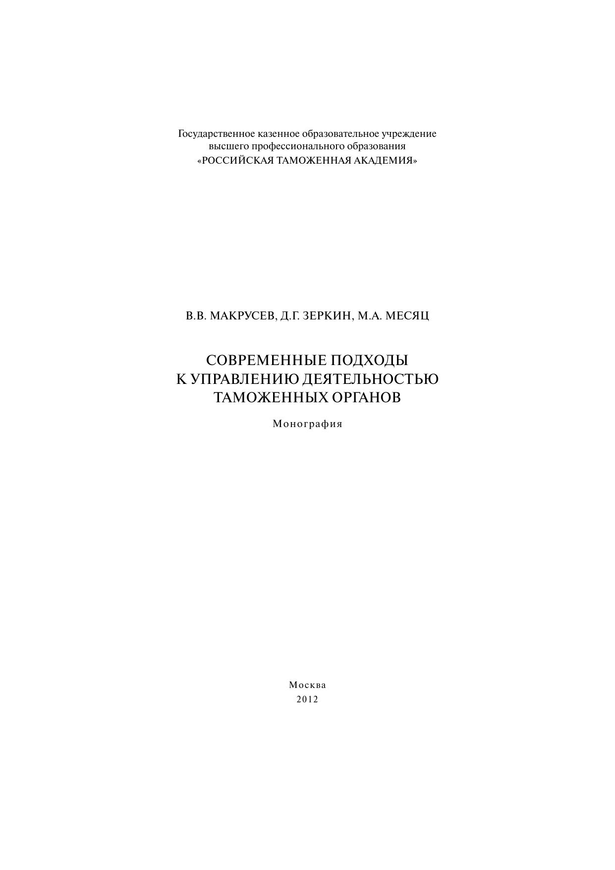 Современные подходы к управлению деятельностью таможенных органов: монография
