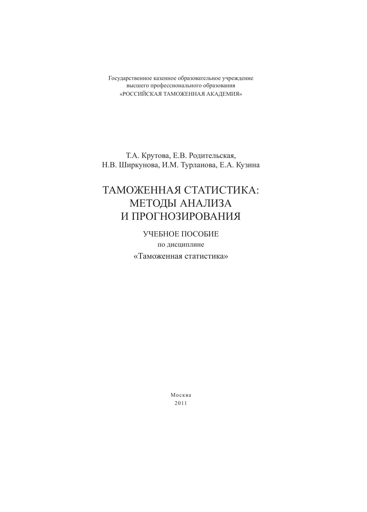 Таможенная статистика: методы анализа и прогнозирования: учебное пособие