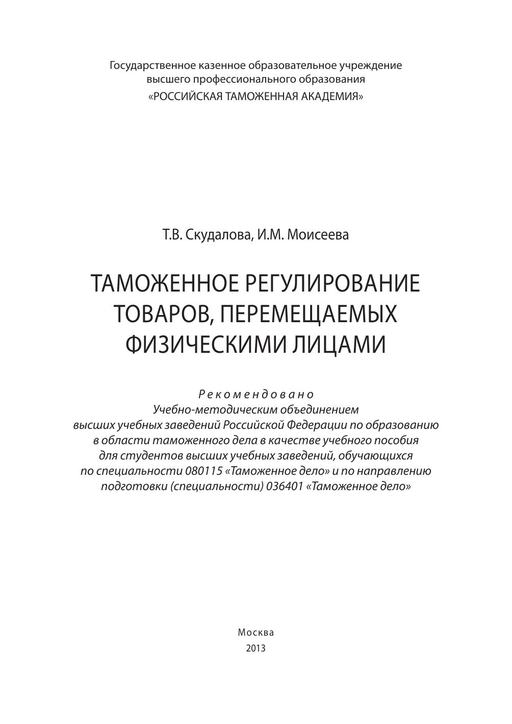 Таможенное регулирование товаров, перемещаемых физическими лицами: учебное пособие