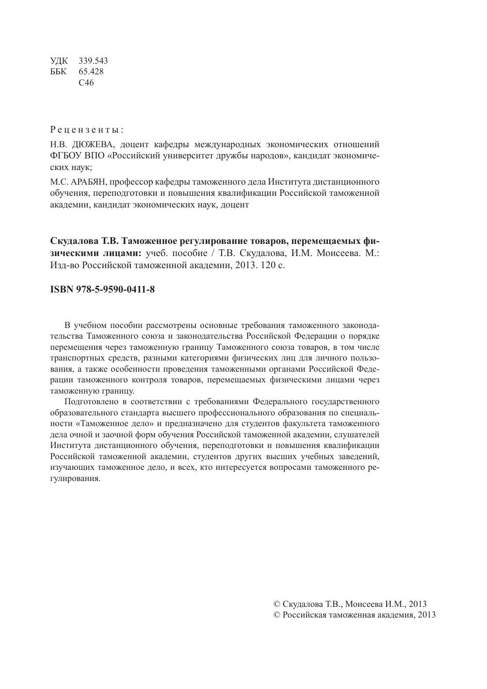 Гриф: Рекомендовано Учебно-методическим объединением высших учебных заведений Российской Федерации по образованию в области таможенного дела в качестве учебного пособия для студентов высших учебных заведений, обучающихся по специальности 080115 «Таможенное дело» и по направлению подготовки (специальности) 036401 «Таможенное дело»