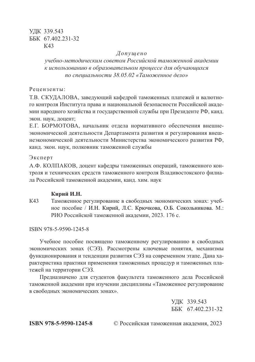Учебное пособие посвящено таможенному регулированию в свободных экономических зонах (СЭЗ). Рассмотрены ключевые понятия, механизмы функционирования и тенденции развития СЭЗ на современном этапе. Дана характеристика практики применения таможенных процедур и таможенных платежей на территории СЭЗ.