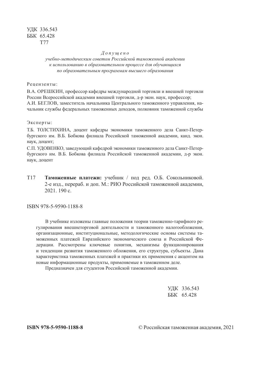 Предназначен для студентов Российской таможенной академии.