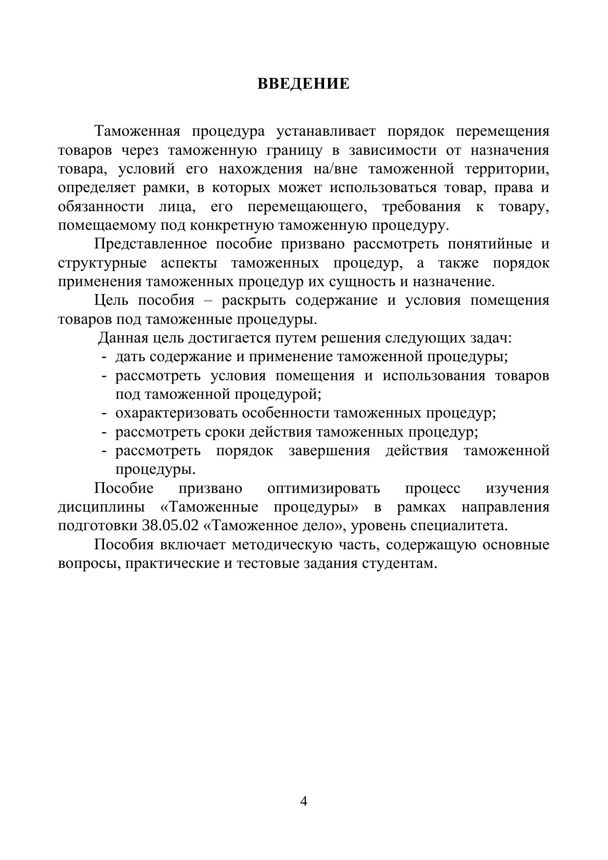 В учебно-методическом пособии рассмотрены основные понятийные и структурные аспекты таможенных процедур, а также порядок применения таможенных процедур их сущность и назначения на современном этапе. Структура работы позволяет получить последовательное представление о назначении, условиях помещения товара под выбранную таможенную процедуру. В пособии автор дает определения основным терминам, что необходимо для формирования базовых профессиональных компетенций, а также предлагает вопросы для обсуждения и практические задания, в том числе и в формате коллективных обсуждений. Пособие адресовано студентам, обучающимся по направлению подготовки 38.05.02 «Таможенное дело»