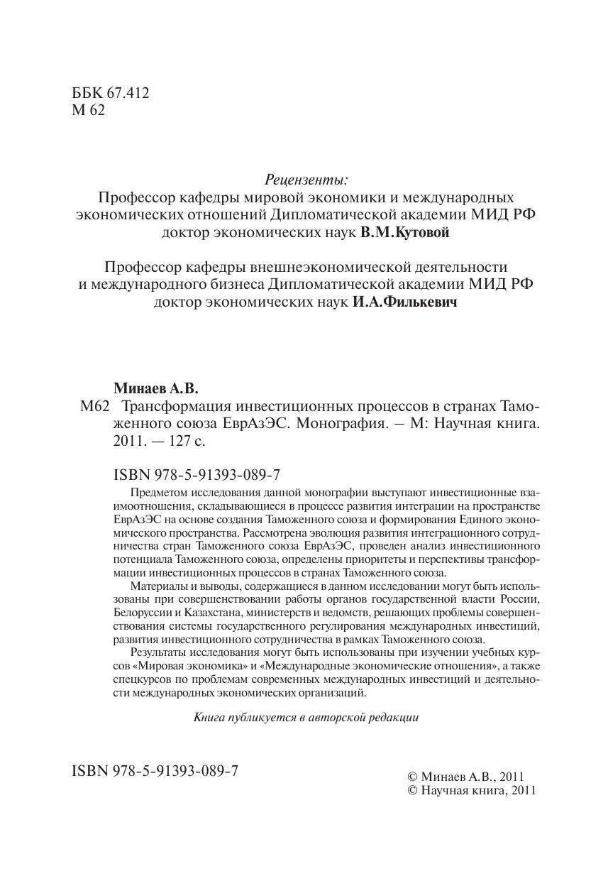 Предметом исследования данной монографии выступают инвестиционные взаимоотношения, складывающиеся в процессе развития интеграции на пространстве ЕврАзЭС на основе создания Таможенного союза и формирования Единого экономического пространства. Рассмотрена эволюция развития интеграционного сотрудничества стран Таможенного союза ЕврАзЭС, проведен анализ инвестиционного потенциала Таможенного союза, определены приоритеты и перспективы трансформации инвестиционных процессов в странах Таможенного союза. Материалы и выводы, содержащиеся в данном исследовании могут быть использованы при совершенствовании работы органов государственной власти России, Белоруссии и Казахстана, министерств и ведомств, решающих проблемы совершенствования системы государственного регулирования международных инвестиций, развития инвестиционного сотрудничества в рамках Таможенного союза. Результаты исследования могут быть использованы при изучении учебных курсов «Мировая экономика» и «Международные экономические отношения», а также спецкурсов по проблемам современных международных инвестиций и деятельности международных экономических организаций.
