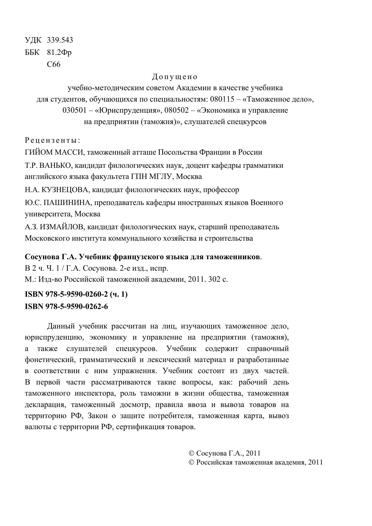 Учебник французского языка для таможенников. В 2 ч. Ч. 1