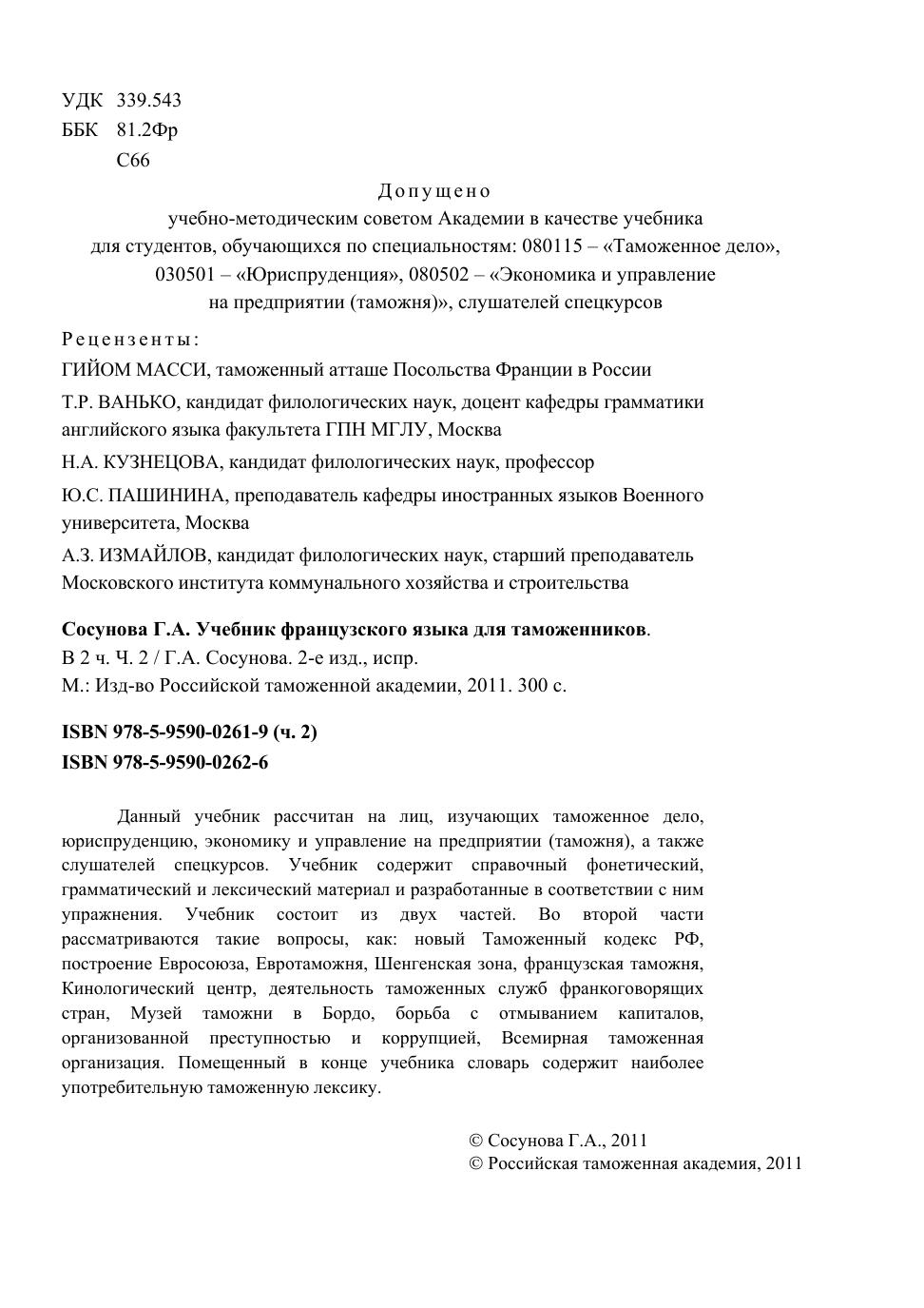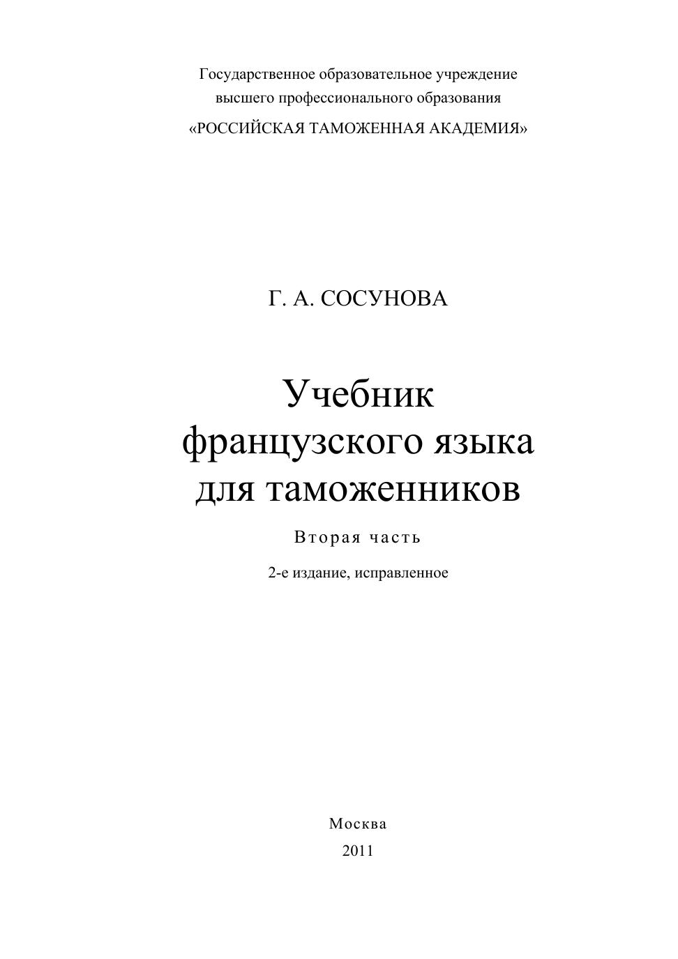 Учебник французского языка для таможенников. В 2 ч. Ч. 2