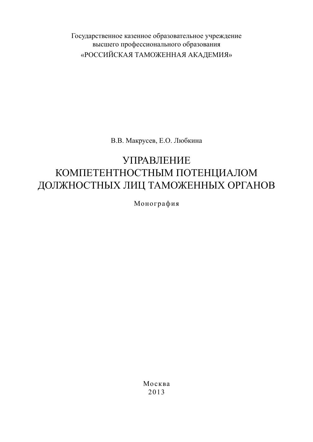 Управление компетентностным потенциалом должностных лиц таможенных органов: монография
