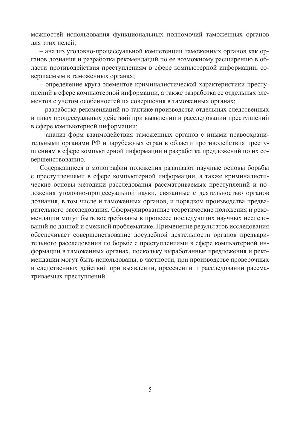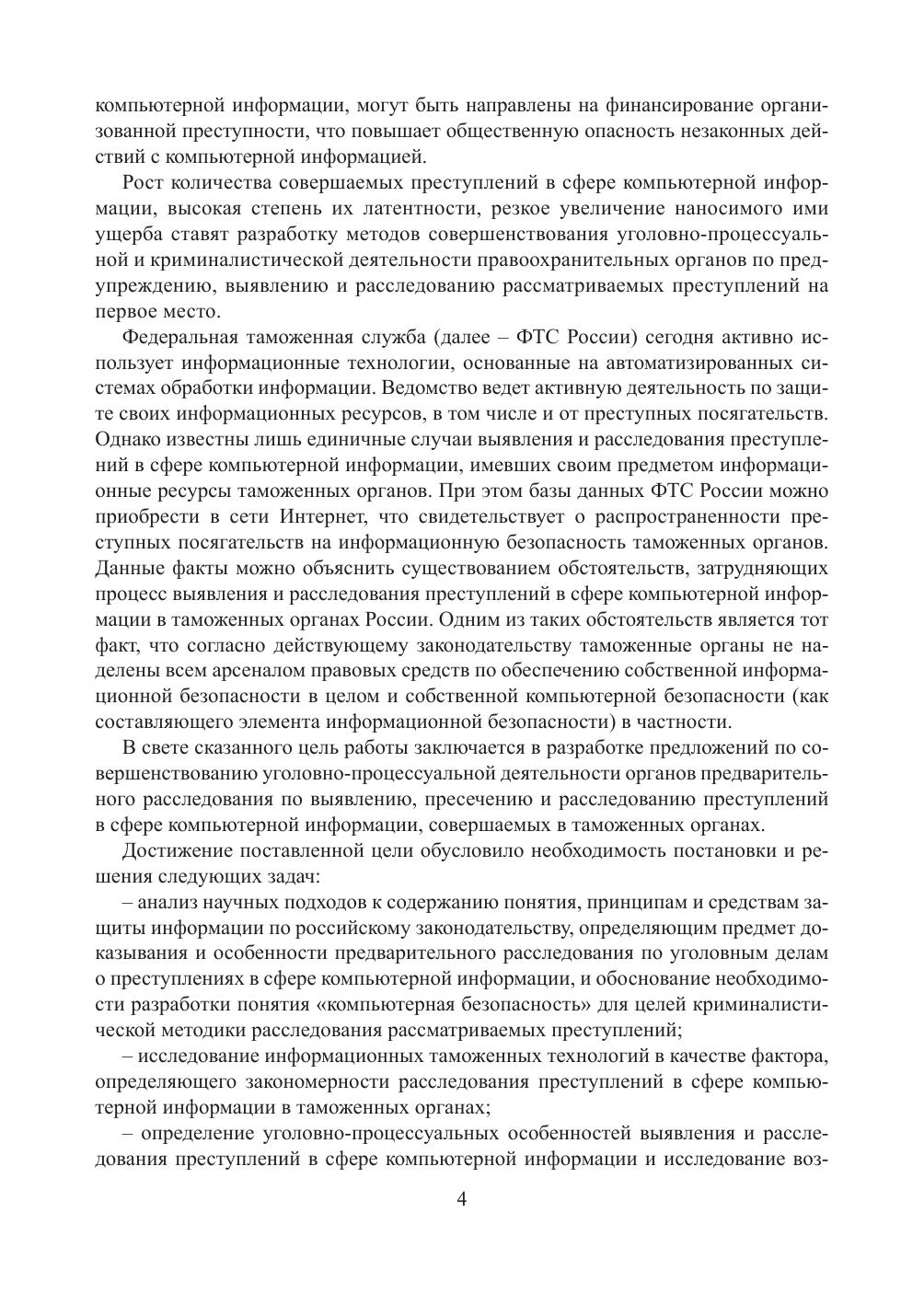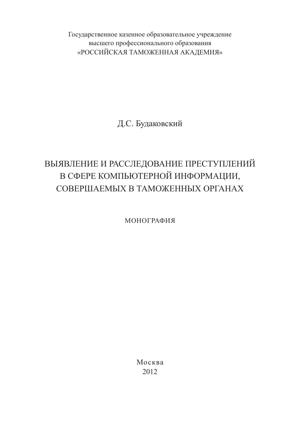 компьютерную информацию, совершаемых в таможенных органах. Автором была поставлена и успешно решена задача совершенствования уголовно-процессуальной деятельности органов предварительного расследования по обеспечению защиты информационных ресурсов ФТС России. Работа предназначена для сотрудников правоохранительных подразделений таможенных органов РФ и государств – членов Таможенного союза, следователей органов предварительного следствия, преподавателей и аспирантов, а также студентов, обучающихся по специальностям «Юриспруденция» и «Таможенное дело».