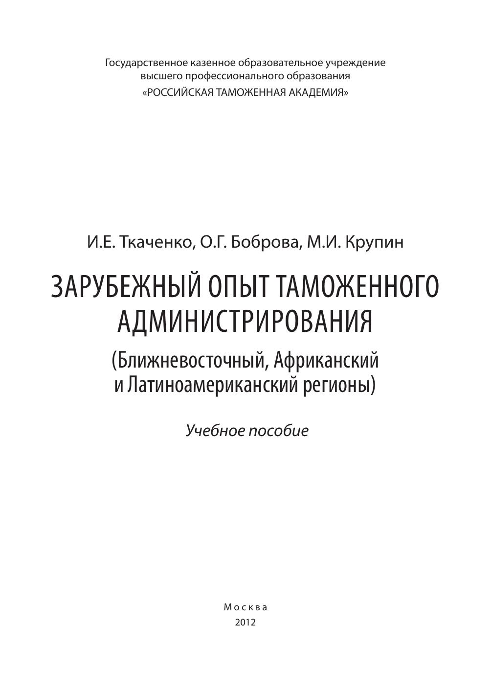 Зарубежный опыт таможенного администрирования Ближневосточный, африканский и латиноамериканский регионы: учебное пособие