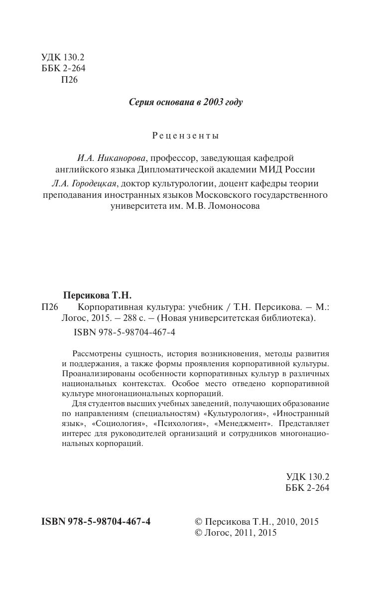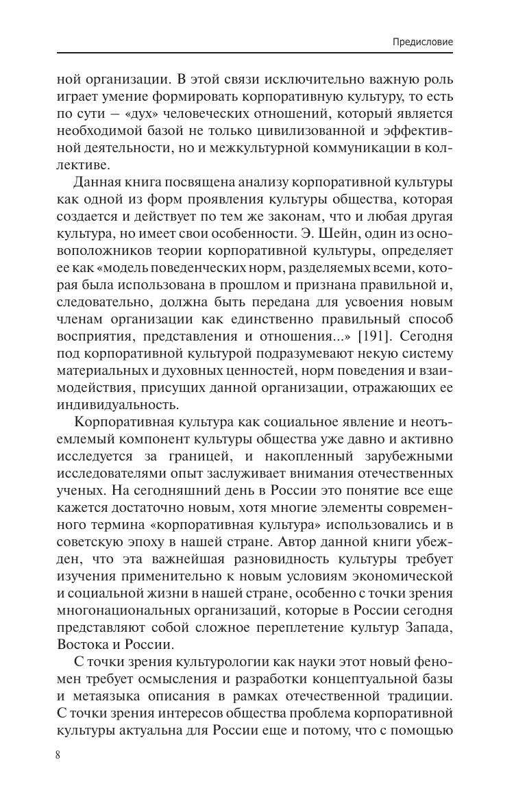 Рассмотрены сущность, история возникновения, методы развития и поддержания, а также формы проявления корпоративной культуры. Проанализированы особенности корпоративных культур в различных национальных контекстах. Особое место отведено корпоративной культуре многонациональных корпораций. Для студентов высших учебных заведений, получающих образование по направлениям (специальностям) «Культурология», «Иностранный язык», «Социология», «Психология», «Менеджмент». Представляет интерес для руководителей организаций и сотрудников многонациональных корпораций.