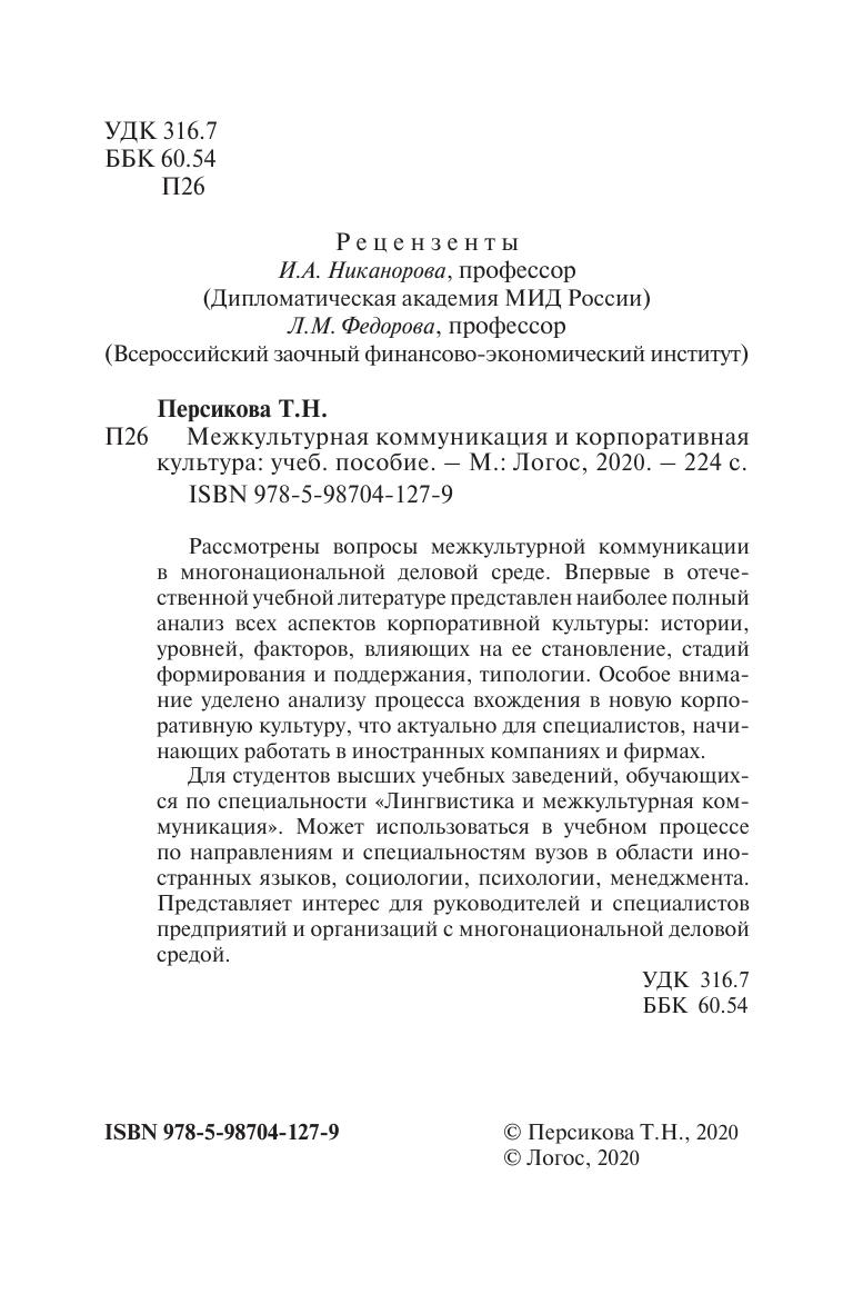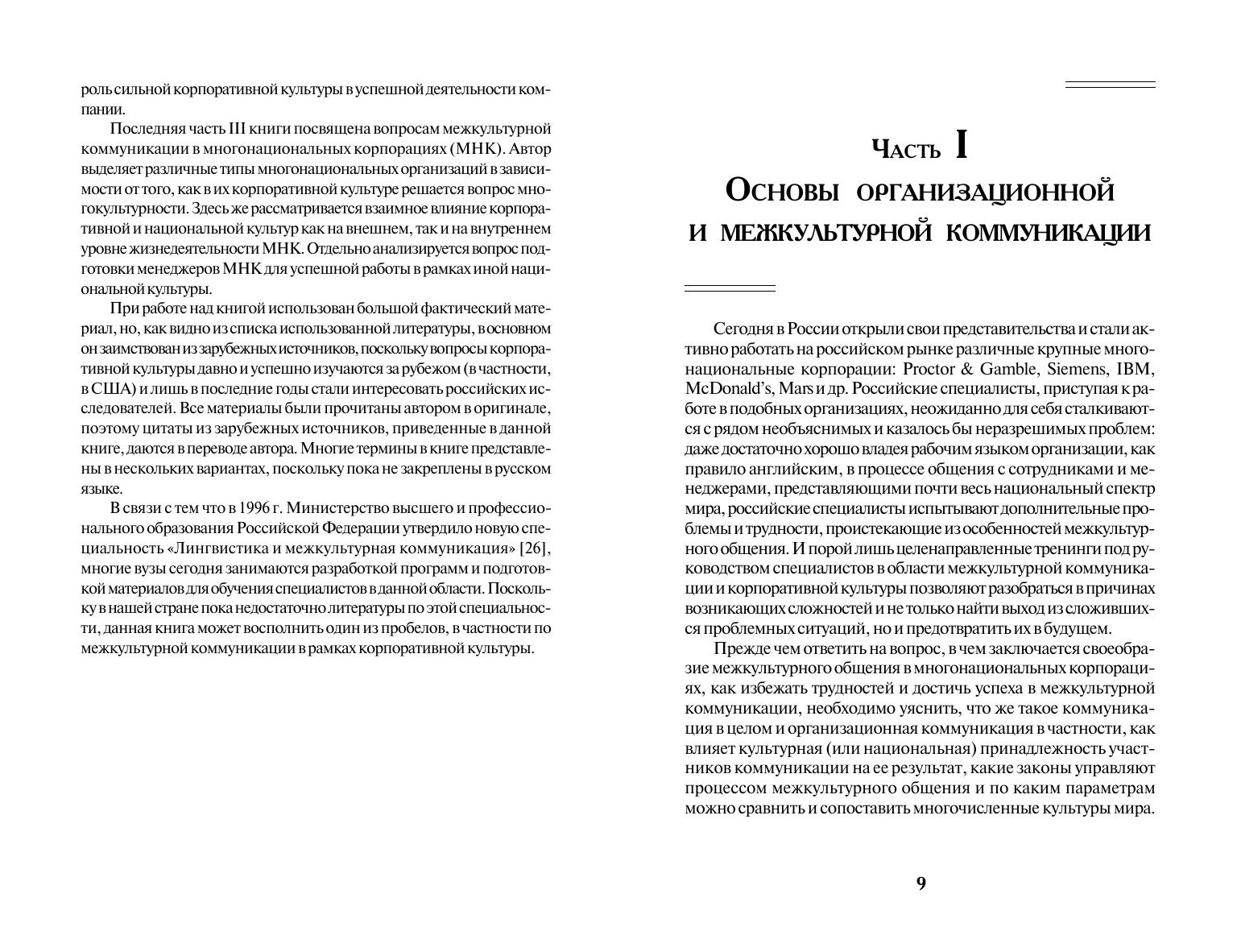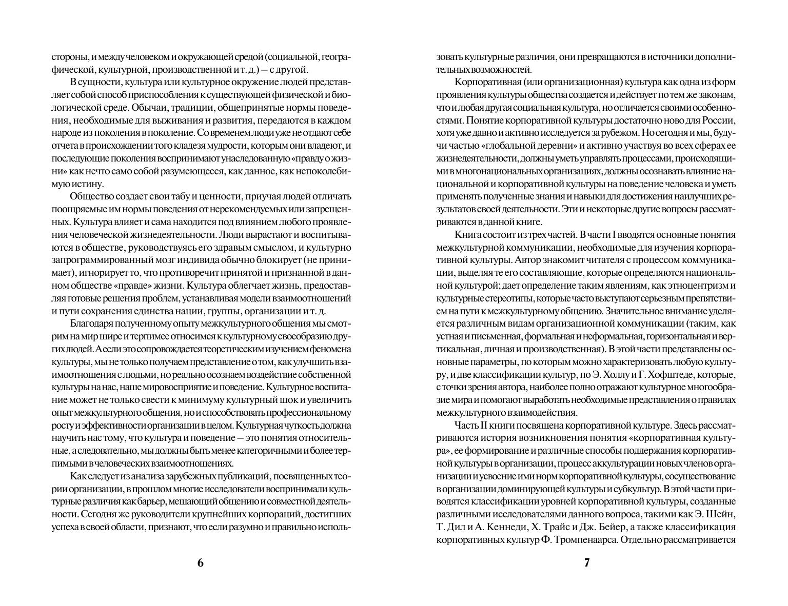 Рассмотрены вопросы межкультурной коммуникации в многонациональной деловой среде. Впервые в отечественной учебной литературе представлен наиболее полный анализ всех аспектов корпоративной культуры: истории, уровней, факторов, влияющих на ее становление, стадий формирования и поддержания, типологии. Особое внимание уделено анализу процесса вхождения в новую корпоративную культуру, что актуально для специалистов, начинающих работать в иностранных компаниях и фирмах. Для студентов высших учебных заведений, обучающихся по специальности «Лингвистика и межкультурная коммуникация». Может использоваться в учебном процессе по направлениям и специальностям вузов в области иностранных языков, социологии, психологии, менеджмента. Представляет интерес для руководителей и специалистов предприятий и организаций с многонациональной деловой средой.