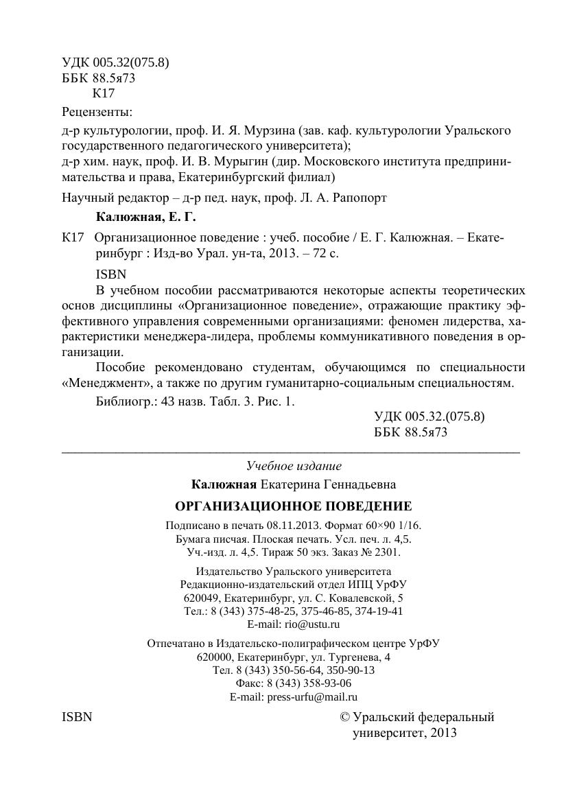 В учебном пособии рассматриваются некоторые аспекты теоретических основ дисциплины «Организационное поведение», отражающие практику эффективного управления современными организациями: феномен лидерства, характеристики менеджера-лидера, проблемы коммуникативного поведения в организации. Пособие рекомендовано студентам, обучающимся по специальности «Менеджмент», а также по другим гуманитарно-социальным специальностям.
