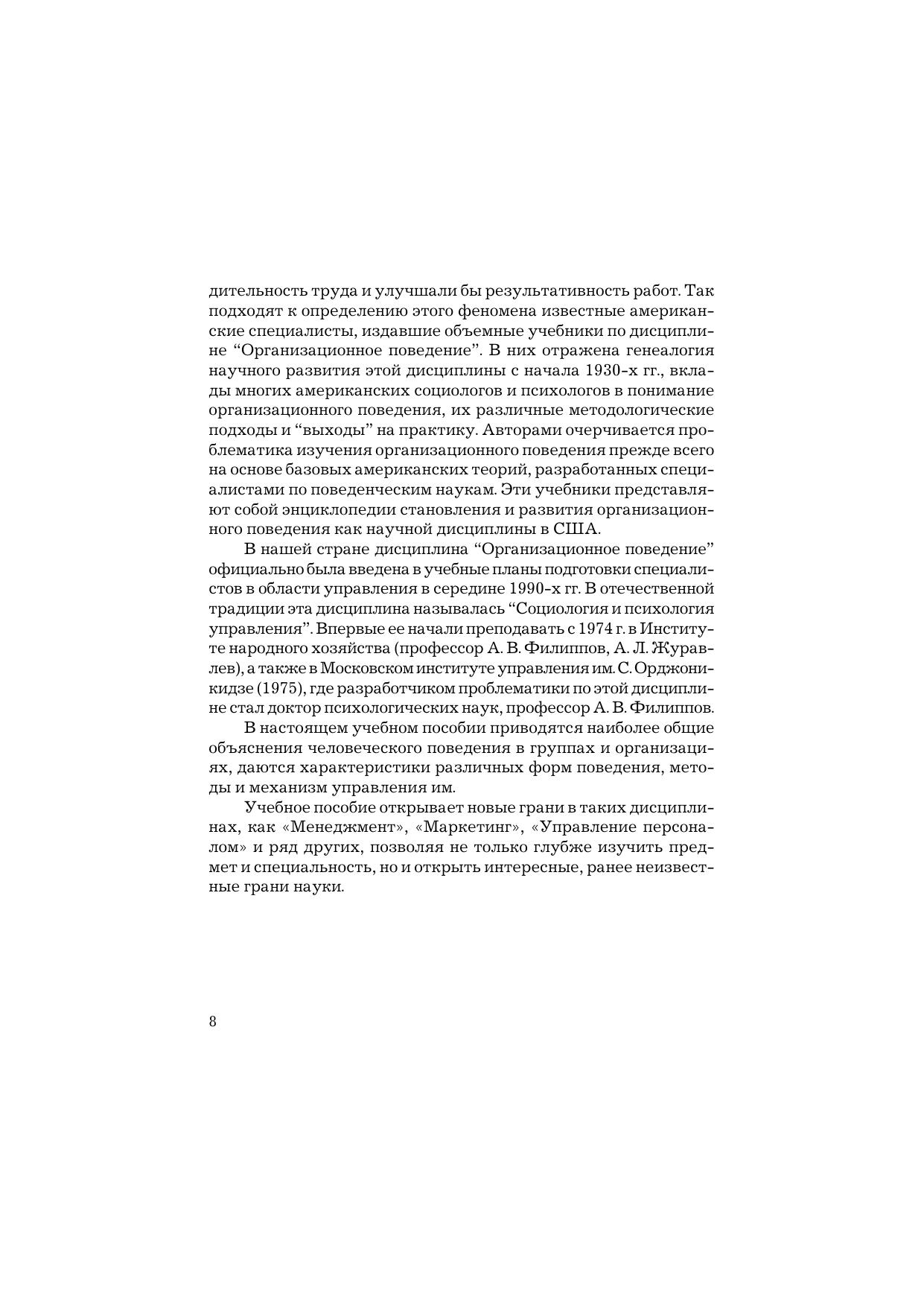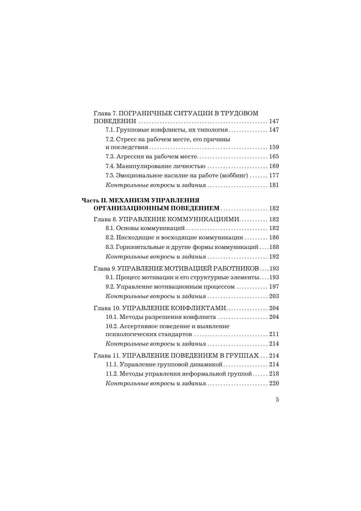 Учебное пособие соответствует государственному образовательному стандарту. В нем рассматриваются современные аспекты трудовых отношений, различные формы человеческого поведения в группах и организациях, методы и механизм управления ими. В первой части пособия организационное поведение представлено с общенаучных позиций как система трудовых отношений. Во второй части обобщается материал, связанный с управлением поведением людей в трудовой среде. Для студентов бакалавриата, обучающихся по направлению подготовки «Менеджмент», преподавателей, а также для практических работников.