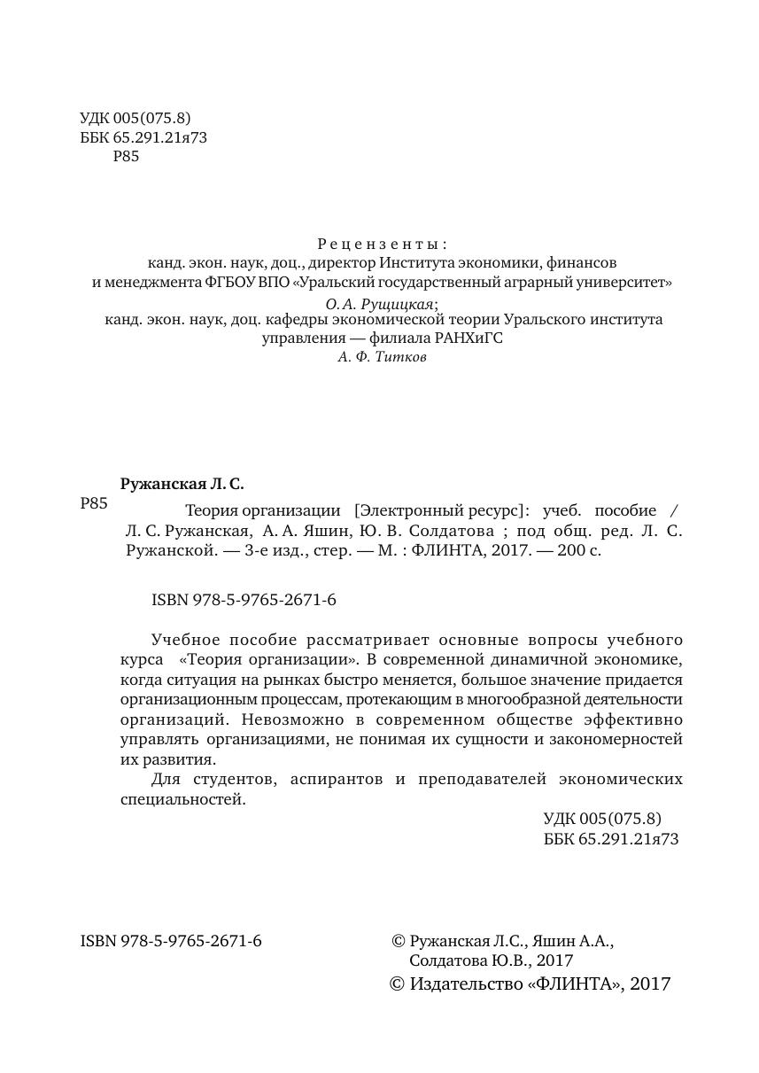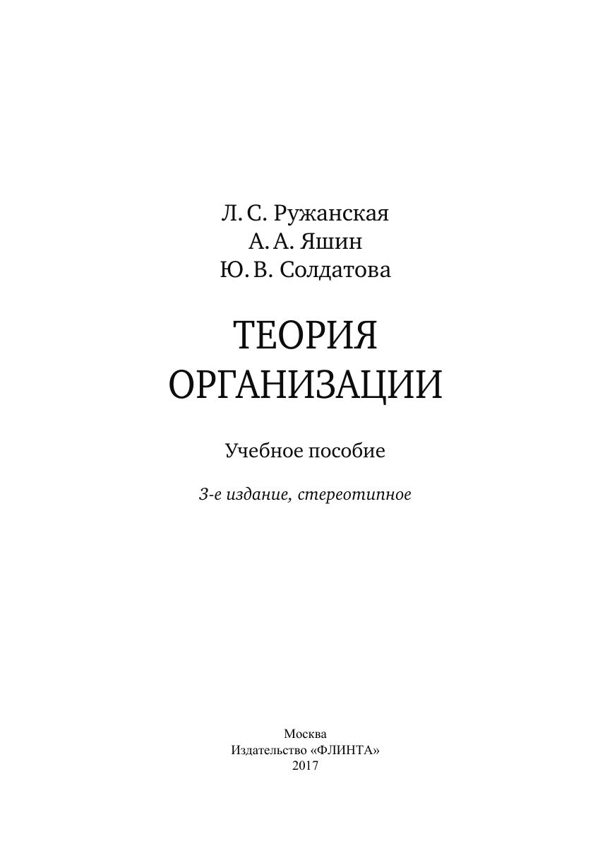 Учебное пособие рассматривает основные вопросы учебного курса «Теория организации». В современной динамичной экономике, когда ситуация на рынках быстро меняется, большое значение придается организационным процессам, протекающим в многообразной деятельности организаций. Невозможно в современном обществе эффективно управлять организациями, не понимая их сущности и закономерностей их развития.