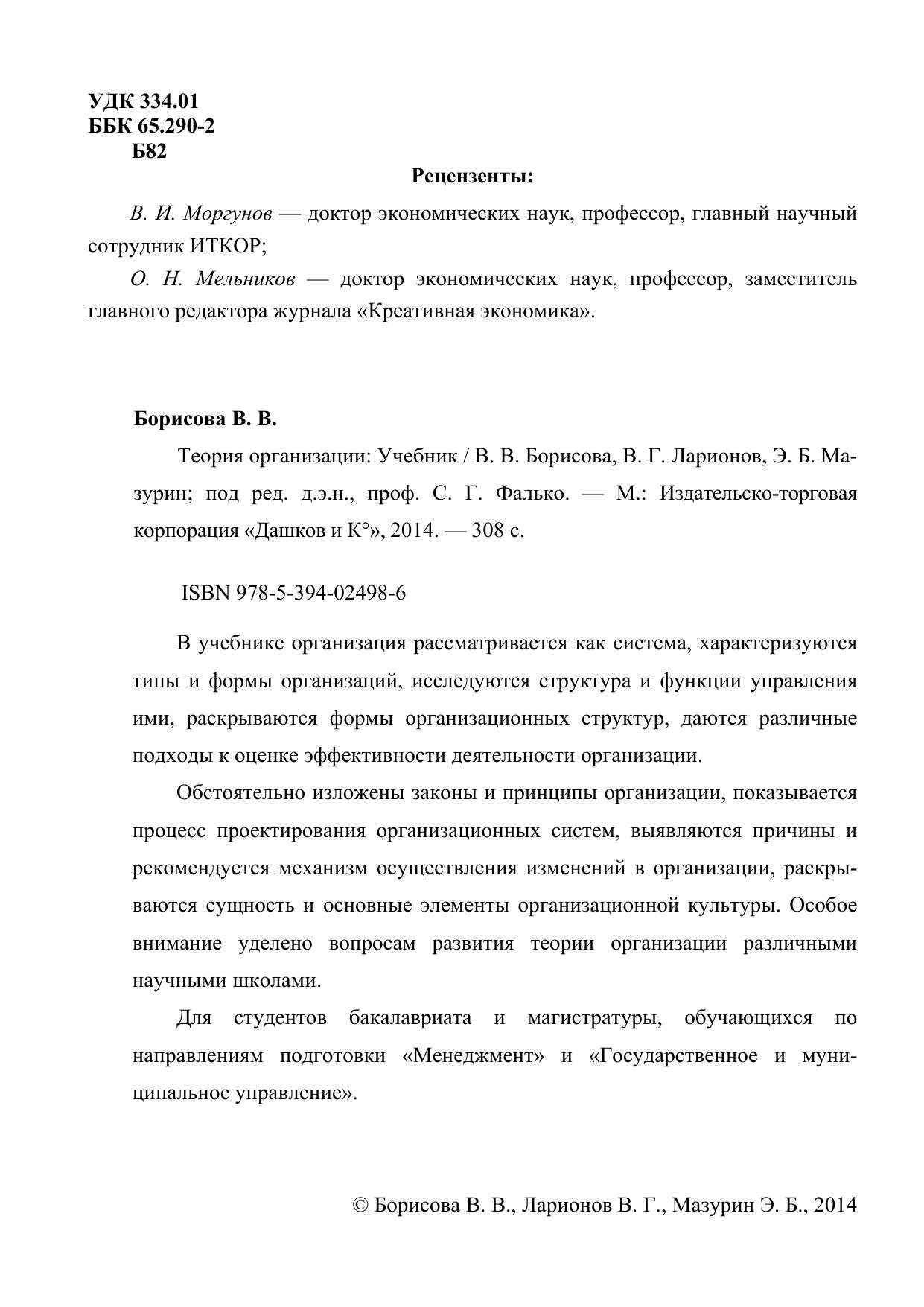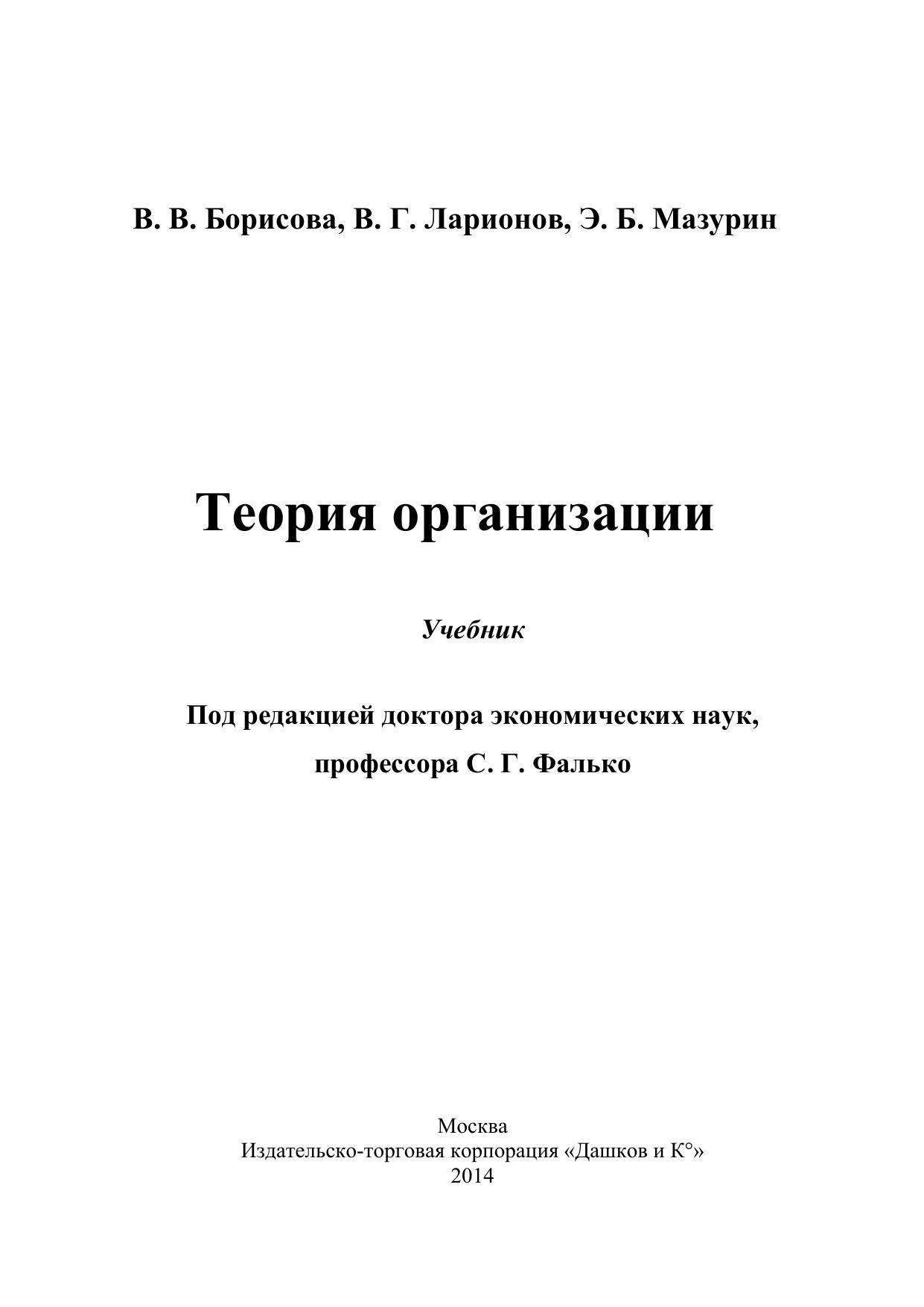 В учебнике организация рассматривается как система, характеризуются типы и формы организаций, исследуются структура и функции управления ими, раскрываются формы организационных структур, даются различные подходы к оценке эффективности деятельности организации. Обстоятельно изложены законы и принципы организации, показывается процесс проектирования организационных систем, выявляются причины и рекомендуется механизм осуществления изменений в организации, раскрываются сущность и основные элементы организационной культуры. Особое внимание уделено вопросам развития теории организации различными научными школами. Для студентов бакалавриата и магистратуры, обучающихся по