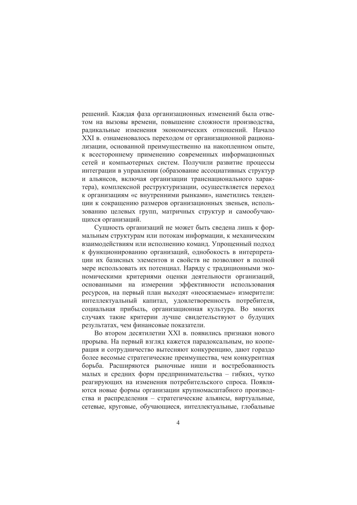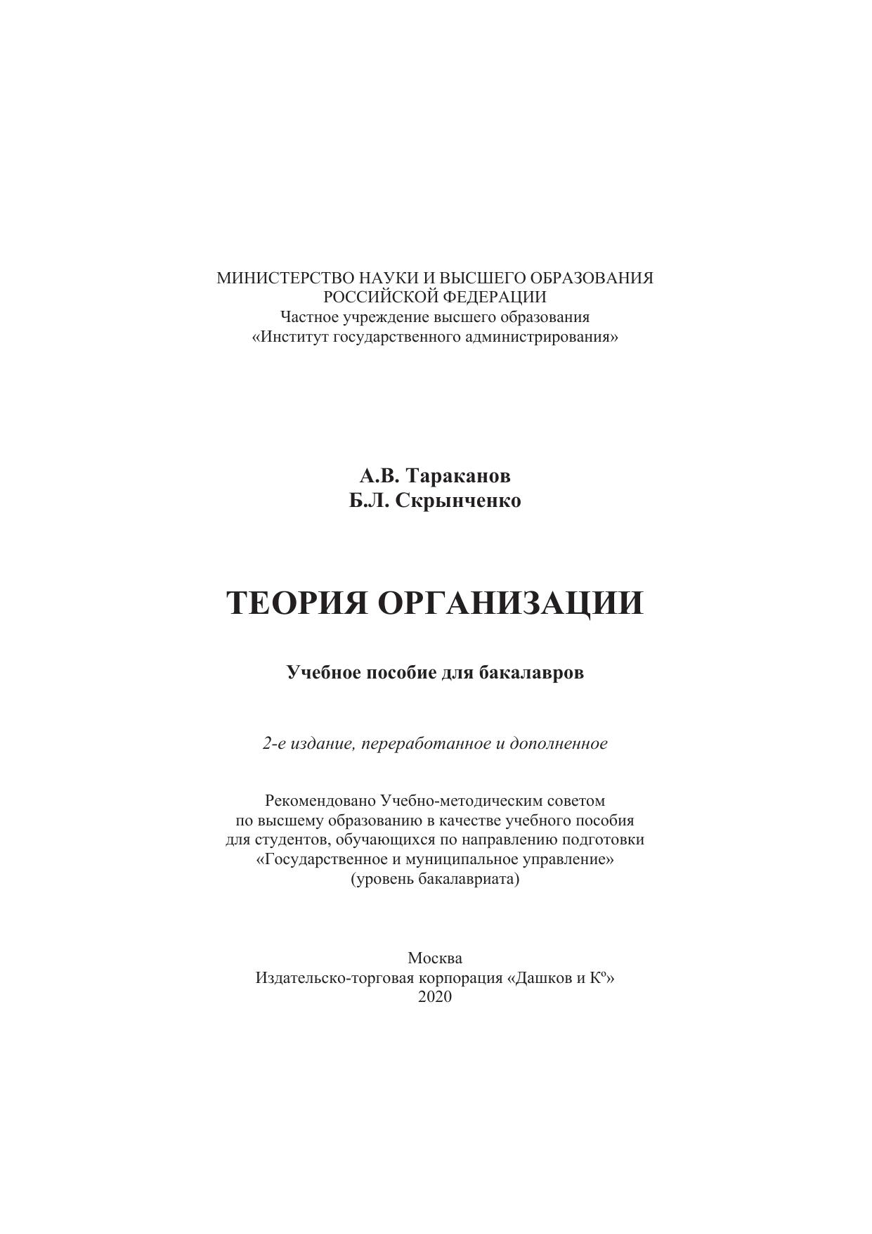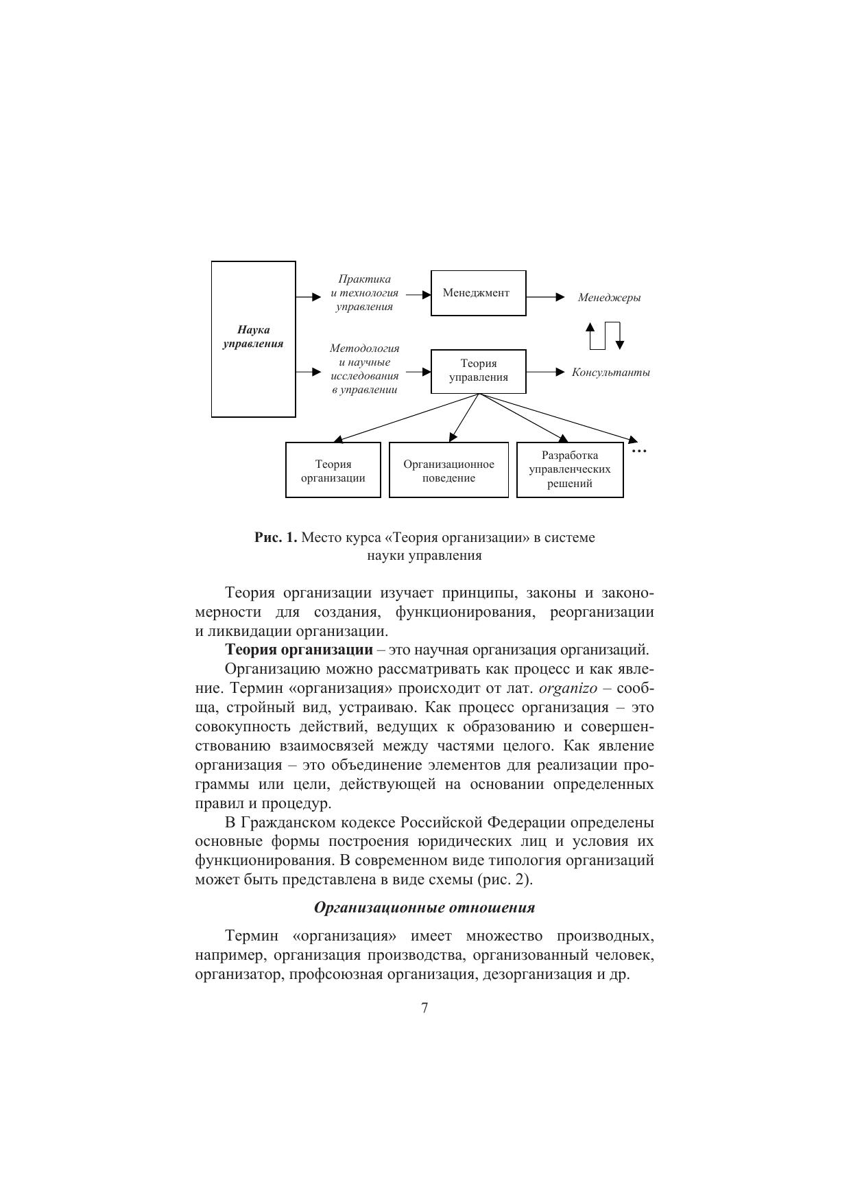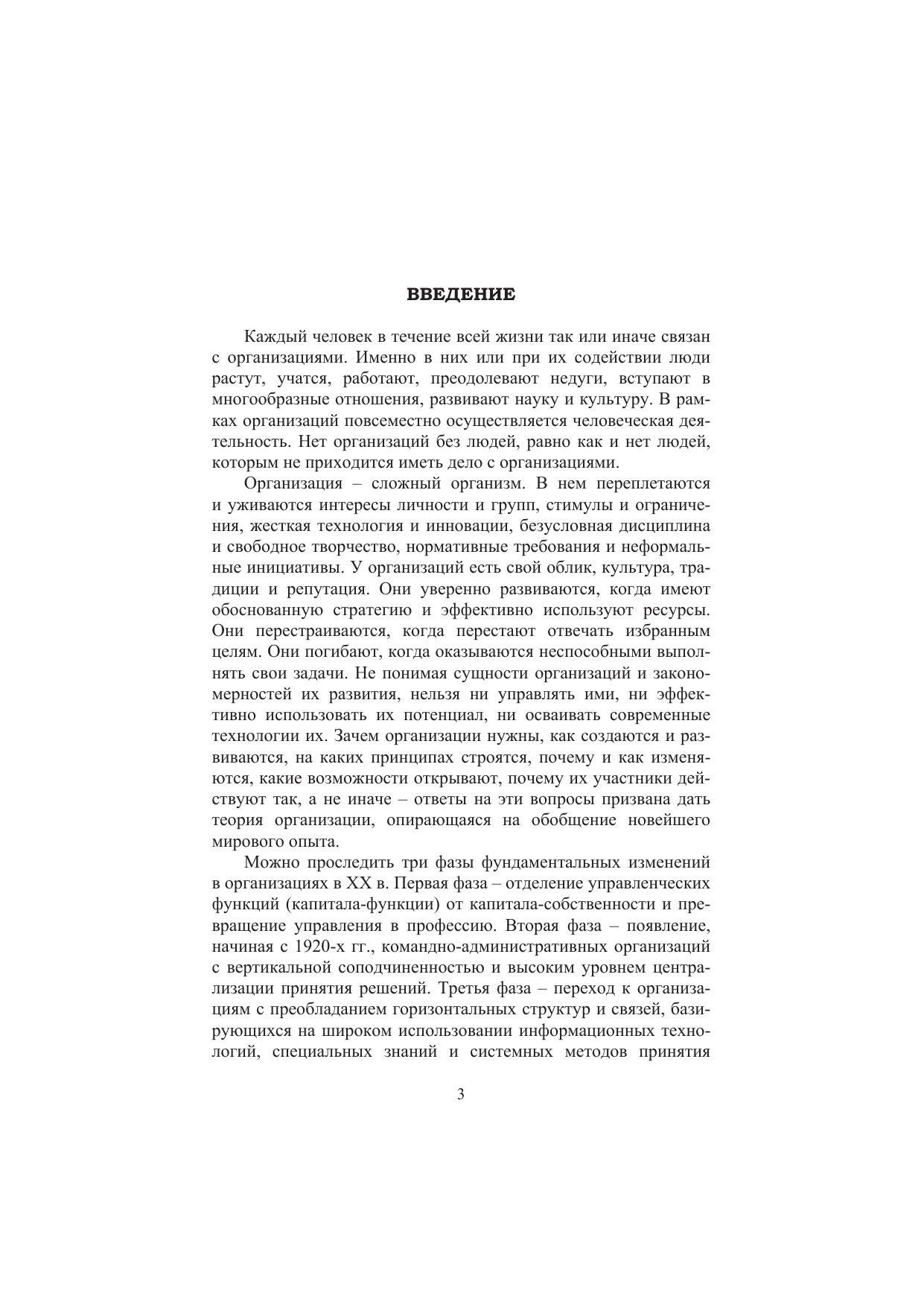 Рассмотрены теория организации, ее место в системе наук, эволюция взглядов на ее сущность и структуру, роль и место человеческого фактора, формирование организационных структур, функционирование, использование информационных технологий, адаптация их к рынку, интеграционные процессы, реорганизация и эффективность организационных изменений, перспективные тенденции развития организаций.