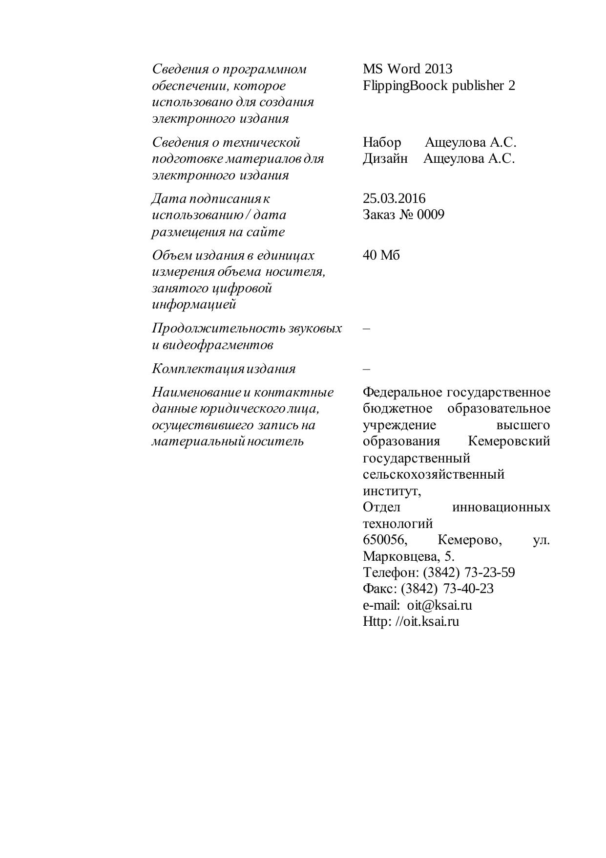 Издательство: Кузбасская государственная селькохозяйственная академия