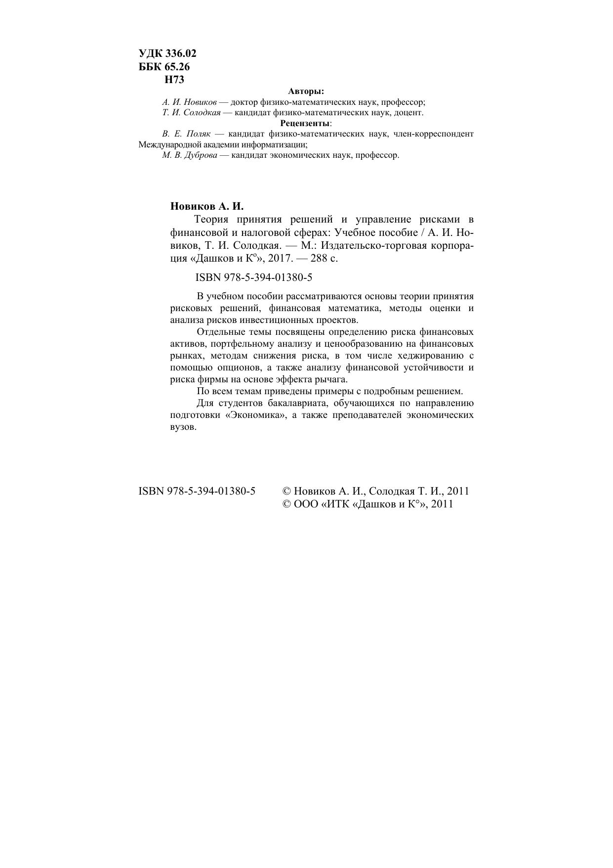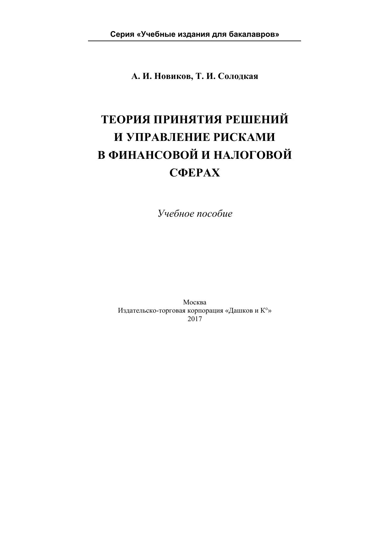 Теория принятия решений и управление рисками в финансовой и налоговой сферах: Учебное пособие для бакалавров