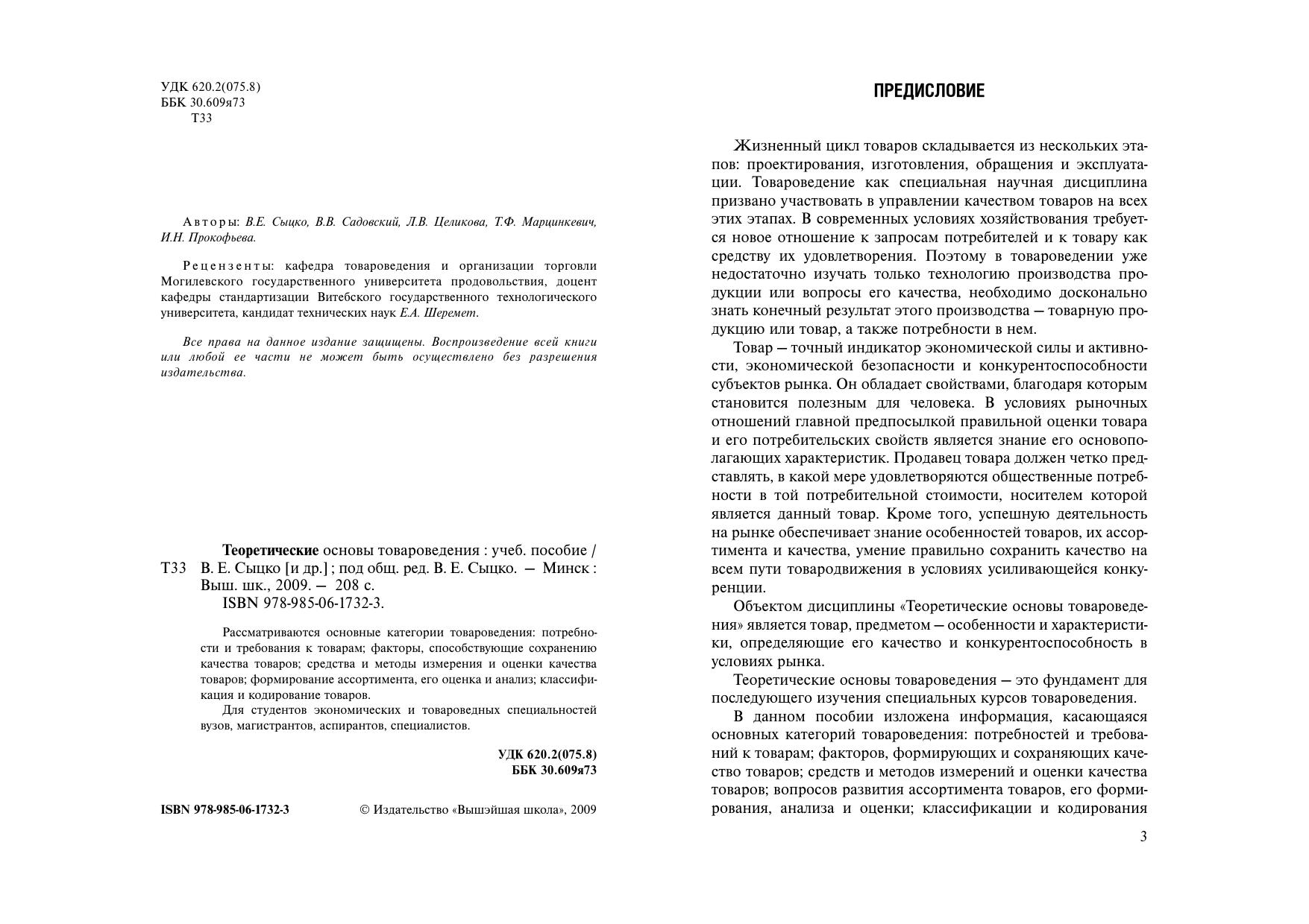 Рассматриваются основные категории товароведения: потребности и требования к товарам факторы, способствующие сохранению качества товаров средства и методы измерения и оценки качества товаров формирование ассортимента, его оценка и анализ классификация и кодирование товаров. Для студентов экономических и товароведных специальностей вузов, магистрантов, аспирантов, специалистов.