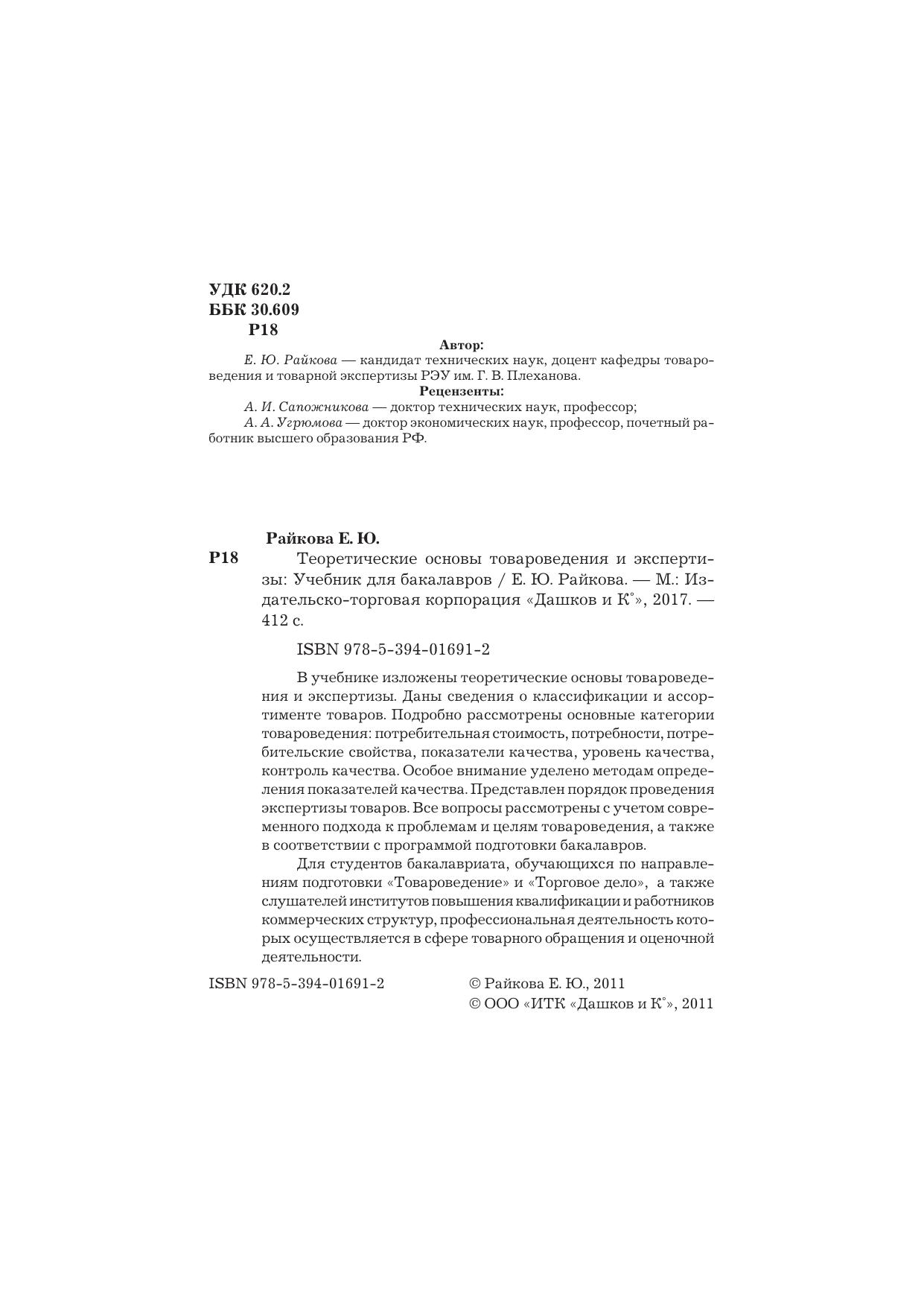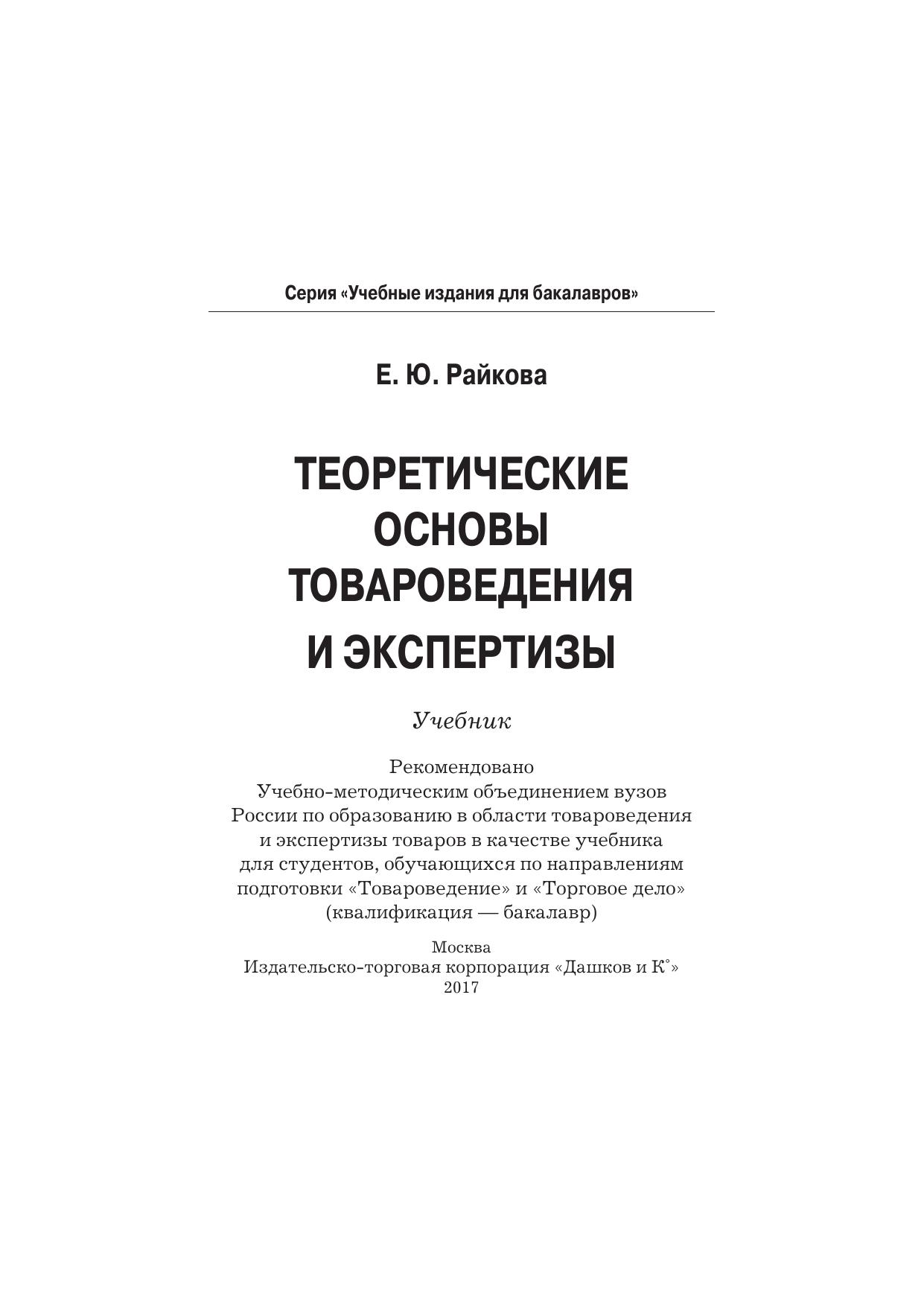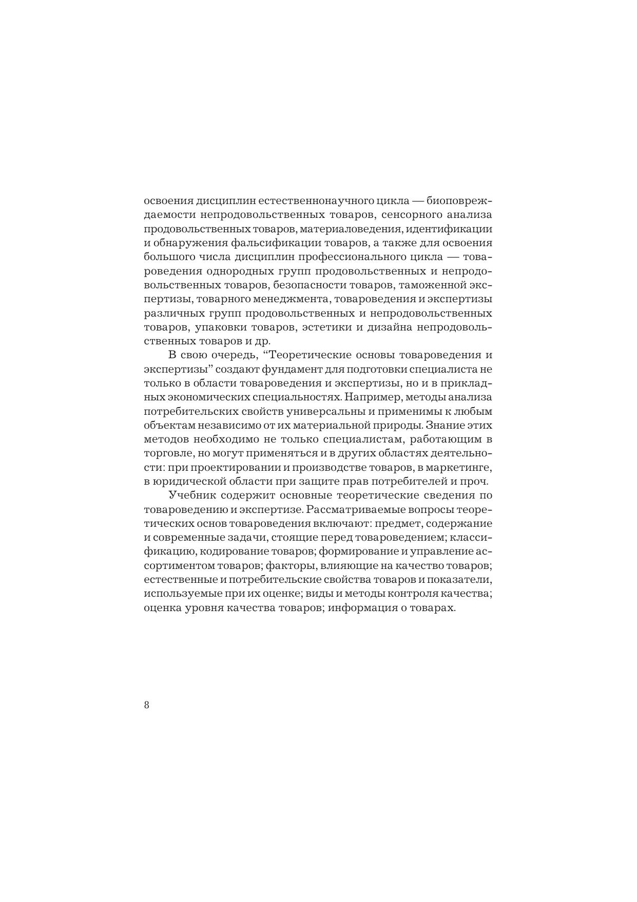 В учебнике изложены теоретические основы товароведения и экспертизы. Даны сведения о классификации и ассортименте товаров. Подробно рассмотрены основные категории товароведения: потребительная стоимость, потребности, потребительские свойства, показатели качества, уровень качества, контроль качества. Особое внимание уделено методам определения показателей качества. Представлен порядок проведения экспертизы товаров. Все вопросы рассмотрены с учетом современного подхода к проблемам и целям товароведения, а также в соответствии с программой подготовки бакалавров. Для студентов бакалавриата, обучающихся по направлениям подготовки «Товароведение» и «Торговое дело», а также