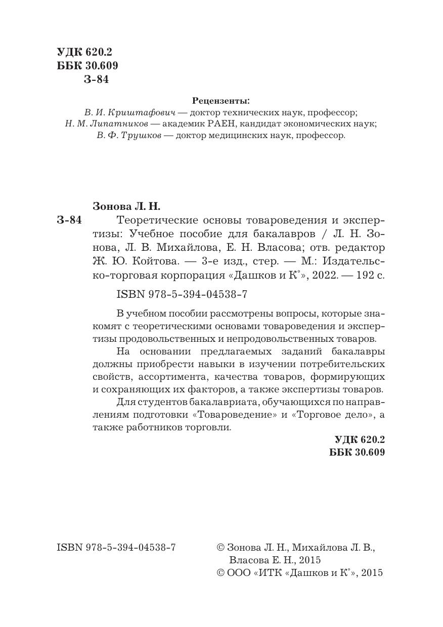 В учебном пособии рассмотрены вопросы, которые знакомят с теоретическими основами товароведения и экспертизы продовольственных и непродовольственных товаров. На основании предлагаемых заданий бакалавры должны приобрести навыки в изучении потребительских свойств, ассортимента, качества товаров, формирующих и сохраняющих их факторов, а также экспертизы товаров. Для студентов бакалавриата, обучающихся по направлениям подготовки «Товароведение» и «Торговое дело», а также работников торговли.