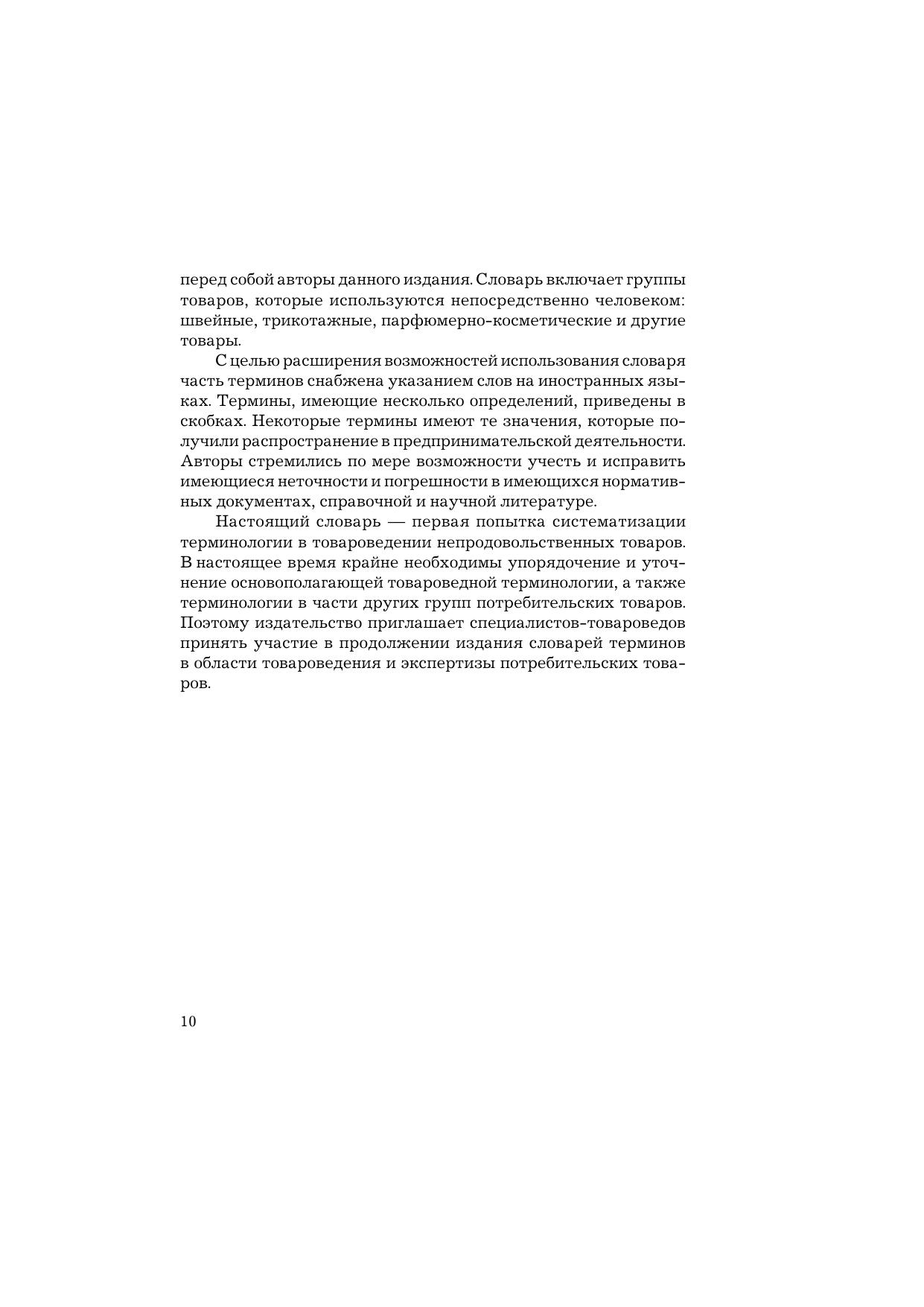 Словарь-справочник содержит около 5 тысяч терминов, используемых в современном товароведении. Включает основные термины по теории товароведения и экспертизе товаров, а также по группам товаров: текстильные, швейные, трикотажные, меховые товары и парфюмерно-косметические изделия. При работе по составлению словаря использованы новые нормативные документы, современная учебная литература и опыт работы авторов в качестве экспертов. Для преподавателей и студентов, экспертов и практических работников в сфере производства и реализации потребительских товаров.