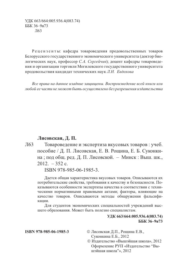 Дается общая характеристика вкусовых товаров. Описываются их потребительские свойства, требования к качеству и безопасности. Показываются особенности экспертизы качества в соответствии с техническими нормативными правовыми актами факторы, влияющие на качество товаров. Описываются методы обнаружения фальсификации. Для студентов экономических специальностей вузов. Может быть полезно специалистам.