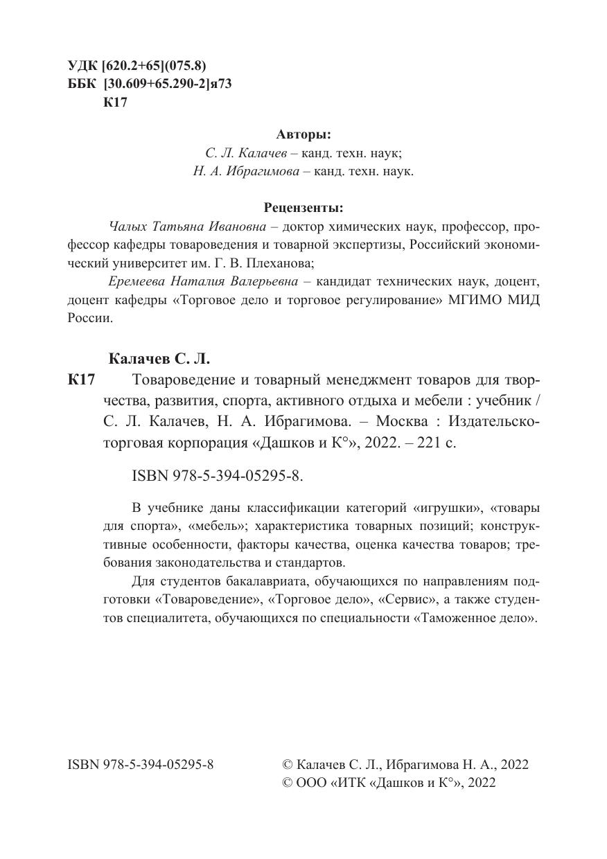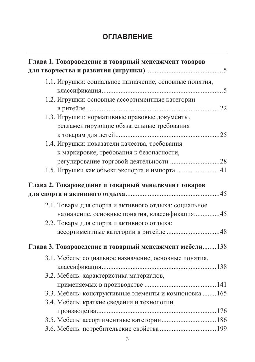 В учебнике даны классификации категорий «игрушки», «товары для спорта», «мебель»; характеристика товарных позиций; конструктивные особенности, факторы качества, оценка качества товаров; требования законодательства и стандартов.