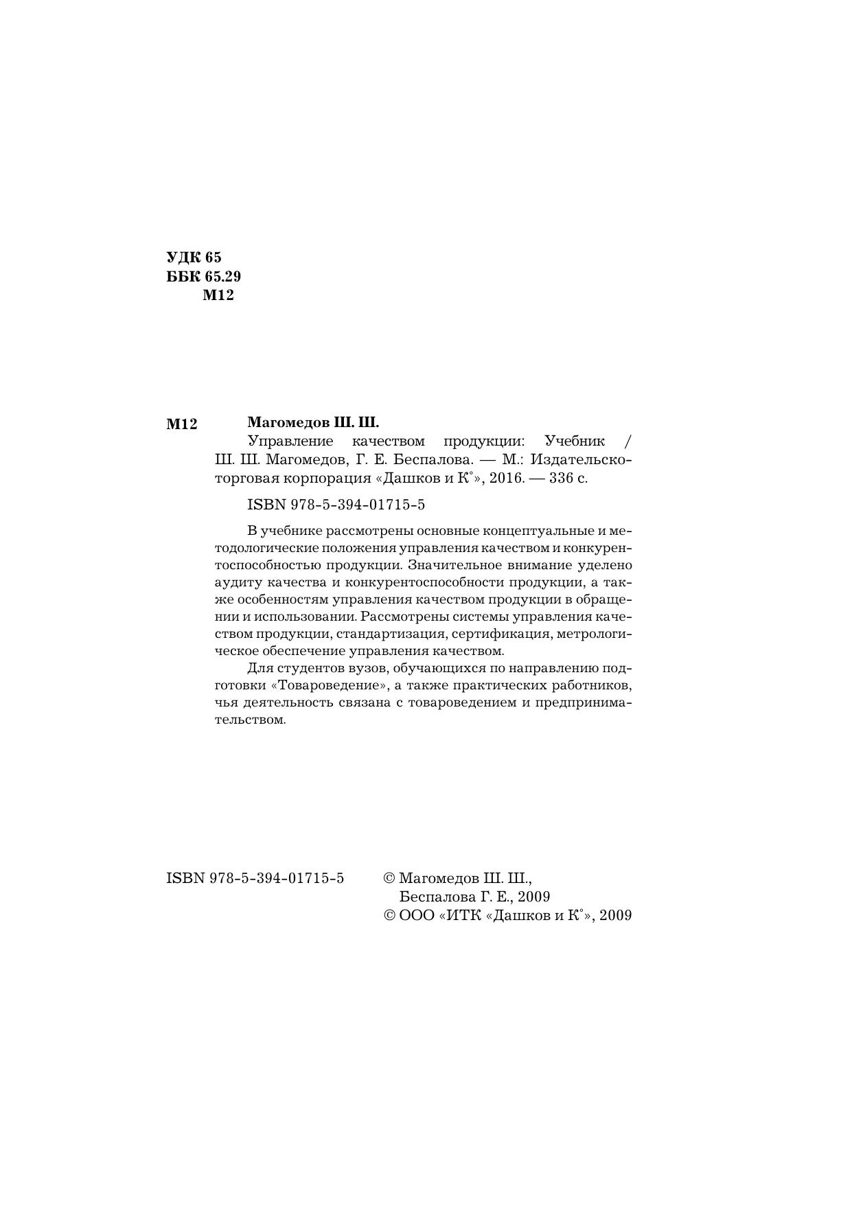 В учебнике рассмотрены основные концептуальные и методологические положения управления качеством и конкурентноспособностью продукции. Значительное внимание уделено аудиту качества и конкурентоспособности продукции, а также особенностям управления качеством подукции в обращении и использовании. Рассмотрены системы управления качеством продукции, стандартизация, сертификация, метрологическое обеспечение управления качеством. Для студентов вузов, обучающихся по специальности "Товароведение и экспертиза товаров", а также практических работников, чья деятельность связана с товароведением и предпринимательством.
