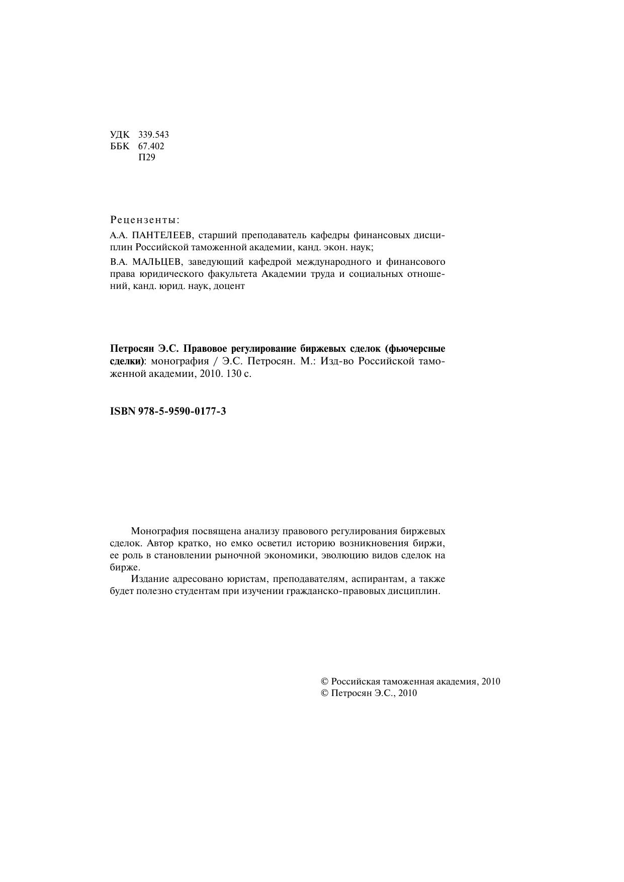 Правовое регулирование биржевых сделок фьючерсные сделки: монография