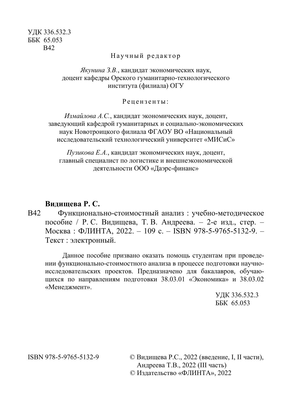Данное пособие призвано оказать помощь студентам при прове-дении функционально-стоимостного анализа в процессе подготовки научно-исследовательских проектов. Предназначено для бакалавров, обучающихся по направлениям подготовки 38.03.01 «Экономика» и 38.03.02 «Менеджмент».
