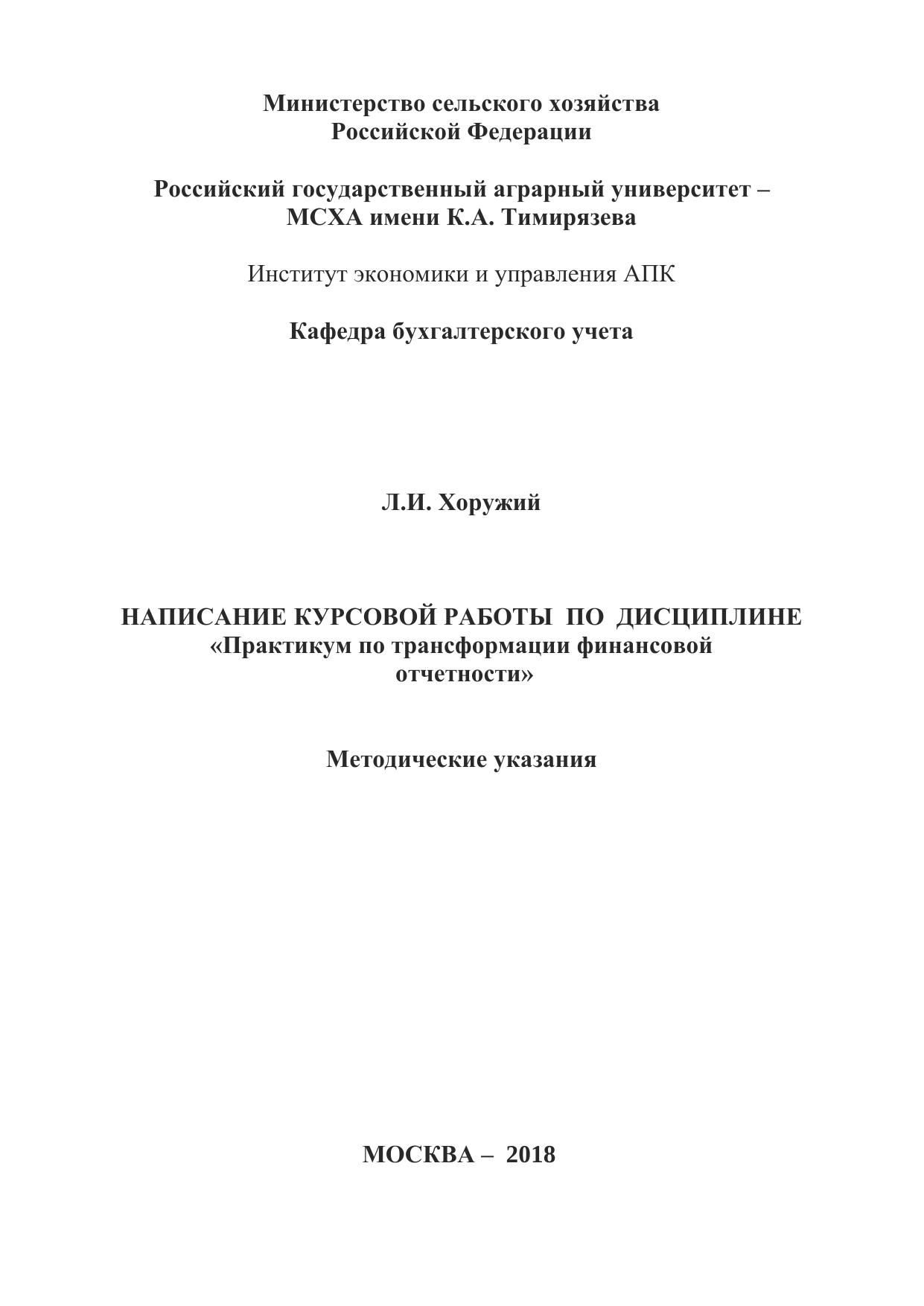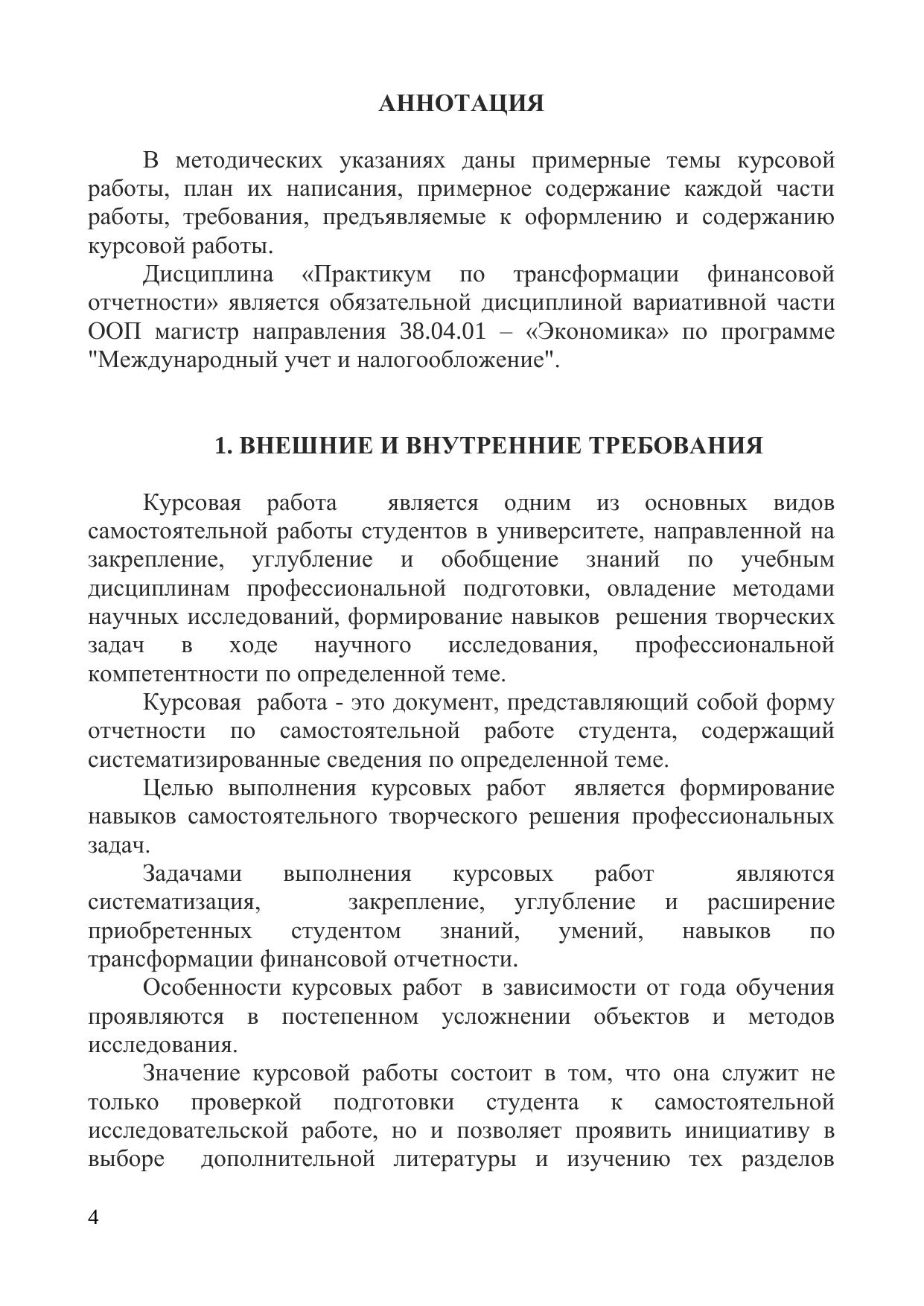 Написание курсовой работы по дисциплине «Практикум по трансформации финансовой отчетности»