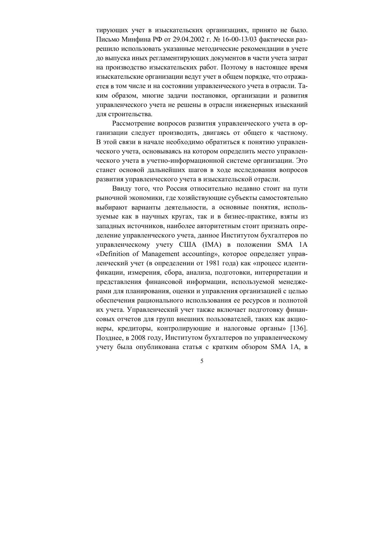 Современное состояние и развитие управленческого учета в изыскательских организациях
