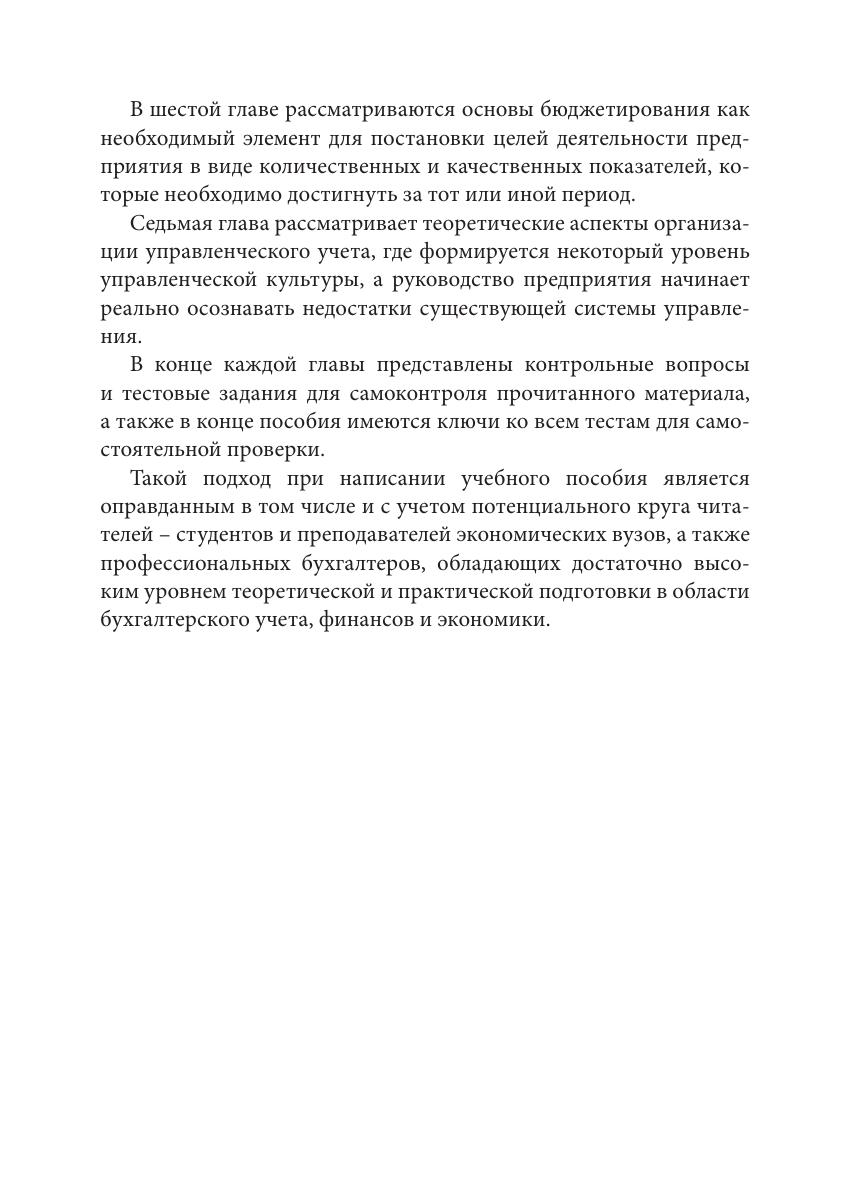 Учебное пособие посвящено актуальной проблеме становления и развития управленческого учета на российских предприятиях. Рассмотрены сложившиеся в отечественной управленческой практике понятия, определения и методы наряду с зарубежным опытом разработки и внедрения управленческого учета. В работе сфокусировано внимание на организационных и методических вопросах становления управленческого учета как неотъемлемой части современного менеджмента. Учебное пособие предназначено для бакалавров, обучающихся по специальности «Бухгалтерский учет, анализ и аудит» и других экономических специальностей, а также для работников служб финансово-экономического блока, менеджеров и руководителей предприятий, преподавателей экономических вузов.