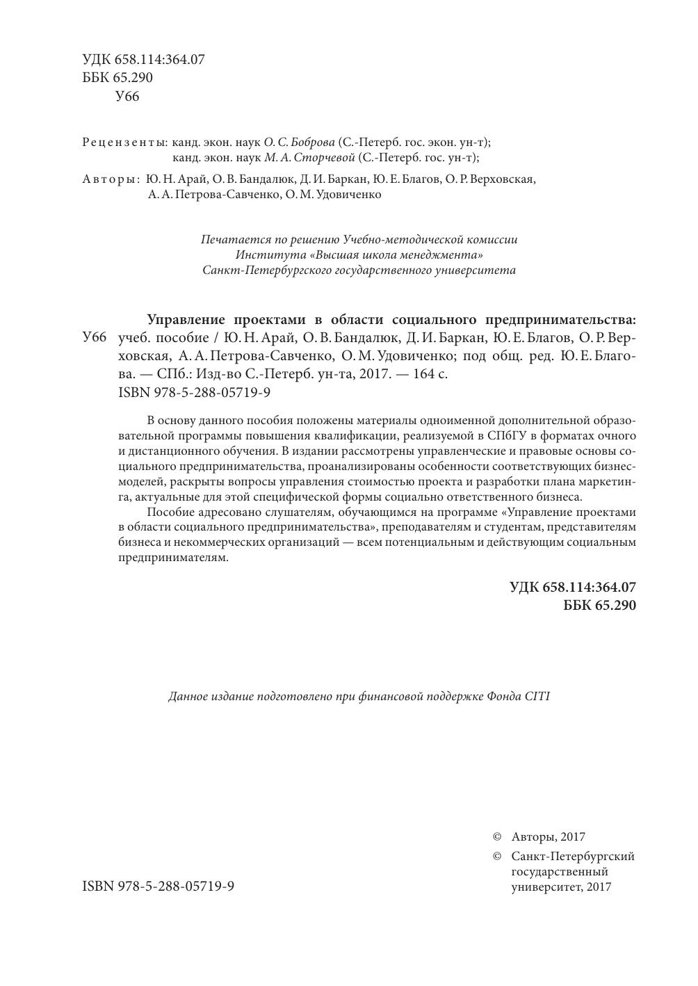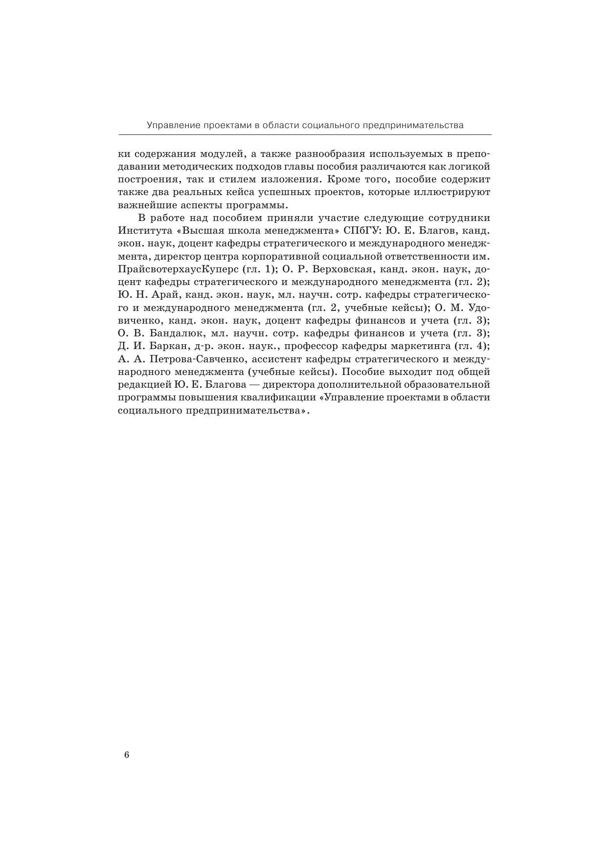 В основу данного пособия положены материалы одноименной дополнительной образовательной программы повышения квалификации, реализуемой в СПбГУ в форматах очного и дистанционного обучения. В издании рассмотрены управленческие и правовые основы социального предпринимательства, проанализированы особенности соответствующих бизнес-моделей, раскрыты вопросы управления стоимостью проекта и разработки плана маркетинга, актуальные для этой специфической формы социально ответственного бизнеса. Пособие адресовано слушателям, обучающимся на программе «Управление проектами в области социального предпринимательства», преподавателям и студентам, представителям бизнеса и некоммерческих организаций — всем потенциальным и действующим социальным предпринимателям.