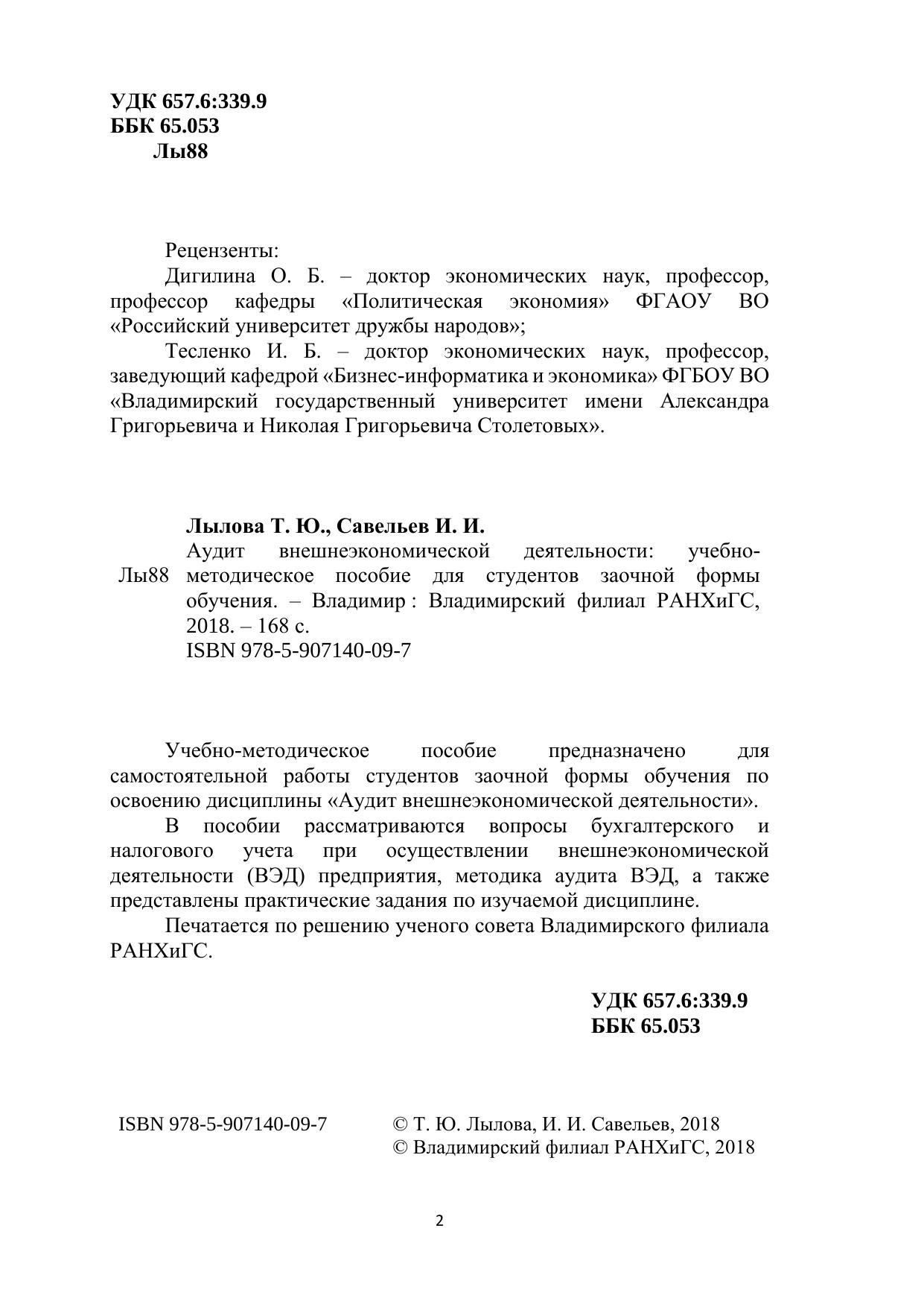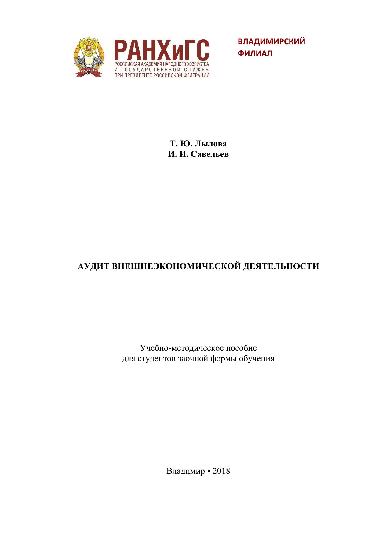 Аудит внешнеэкономической деятельности для студентов заочной формы обучения